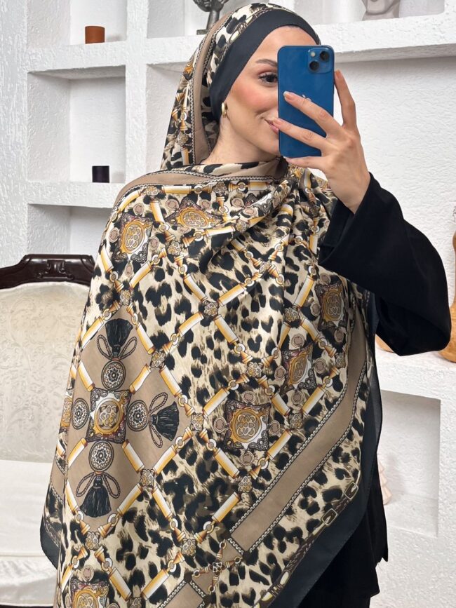 Hermes Leopar Pamuk Soft Şal 65329 – SİYAH-LATTE