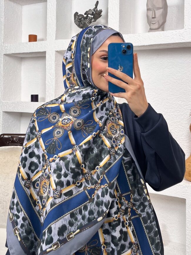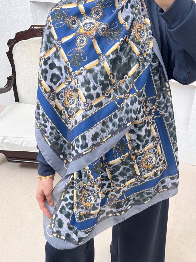 Hermes Leopar Pamuk Soft Şal 65329 – Lacivert