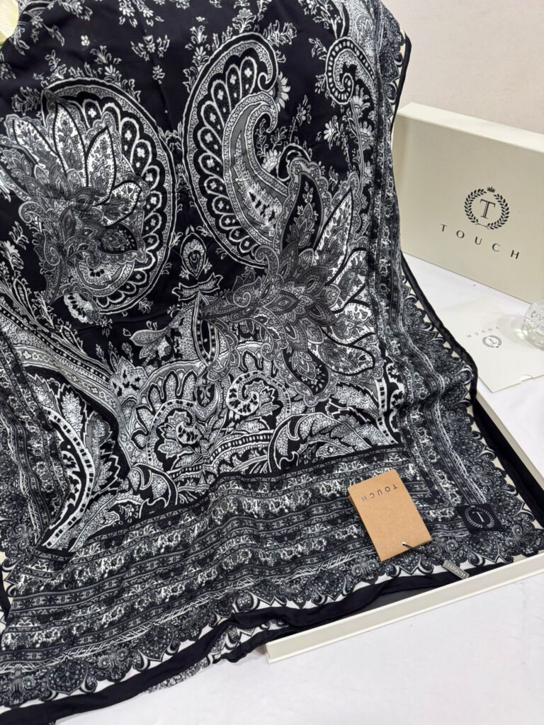 Touch İthal Etnik Desen Yün İpek Şal- 20450 – Siyah