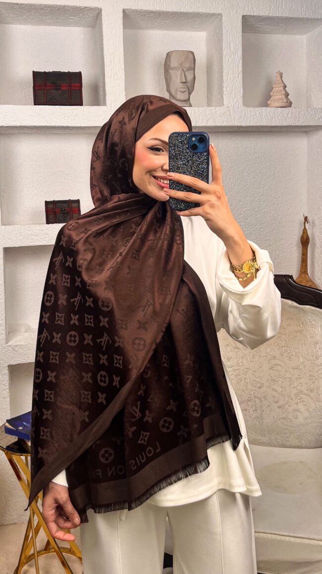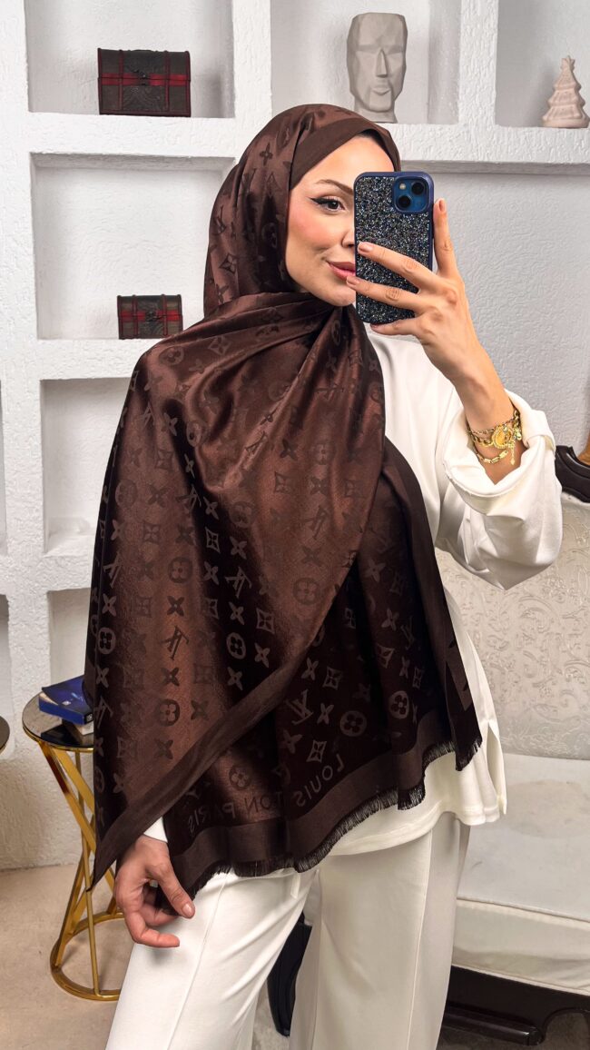 İthal Lv Kaşmir İpek Şal 49104 – Koyu kahve