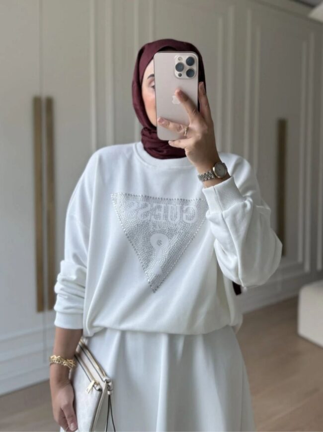 • İndirim! Ges Taş Detay Sweat (ŞAL HEDİYE) SWT100432- Beyaz