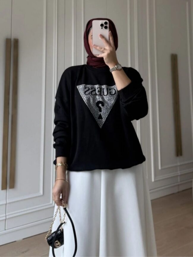 • İndirim! Ges Taş Detay Sweat (ŞAL HEDİYE) SWT100432- Siyah