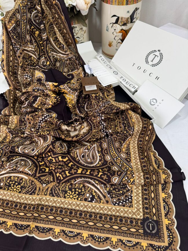 Touch İthal Etnik Desen Pamuk İpek Şal 63460- Acı Kahve – Vizon