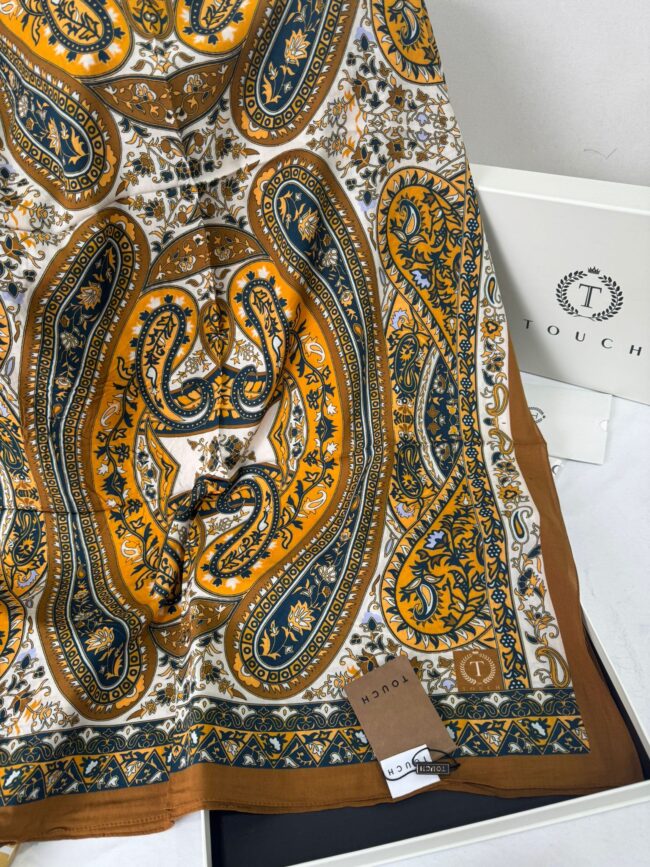 Touch İthal Etnik Desen Yün İpek Şal- 35110 – Kahve Turuncu