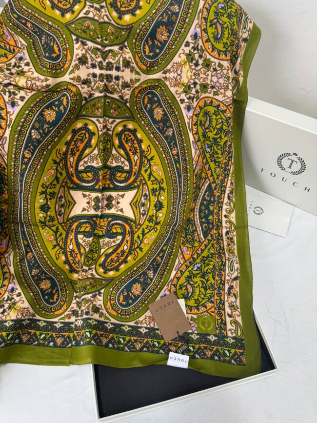 Touch İthal Etnik Desen Pamuk İpek Şal- 35440 – Yeşil