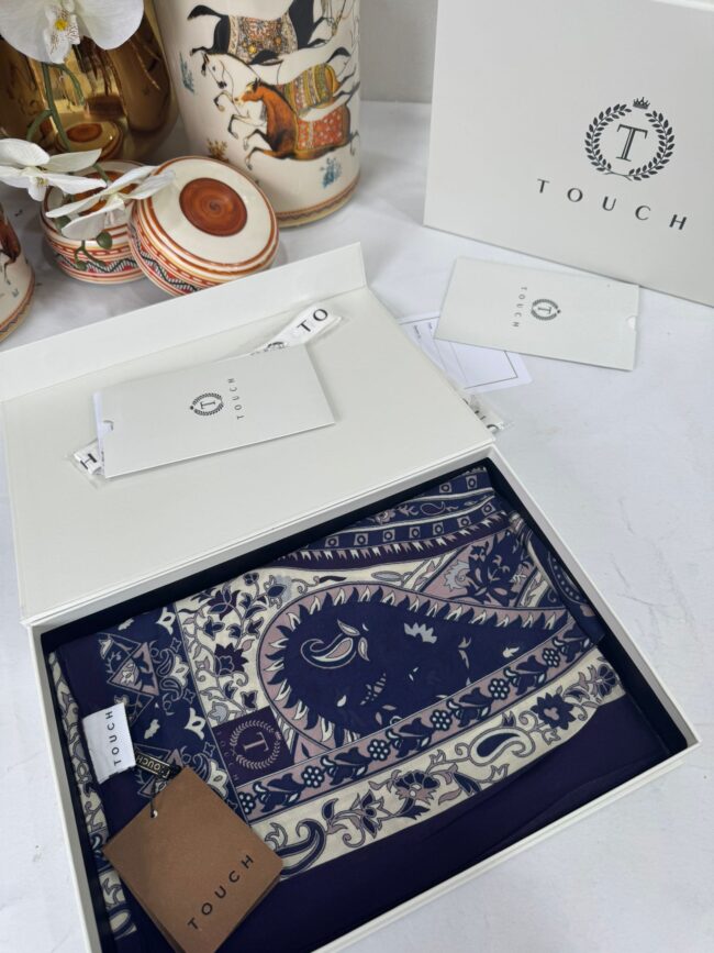 Touch İthal Etnik Desen Pamuk İpek Şal- 35440 – Mor Ekru