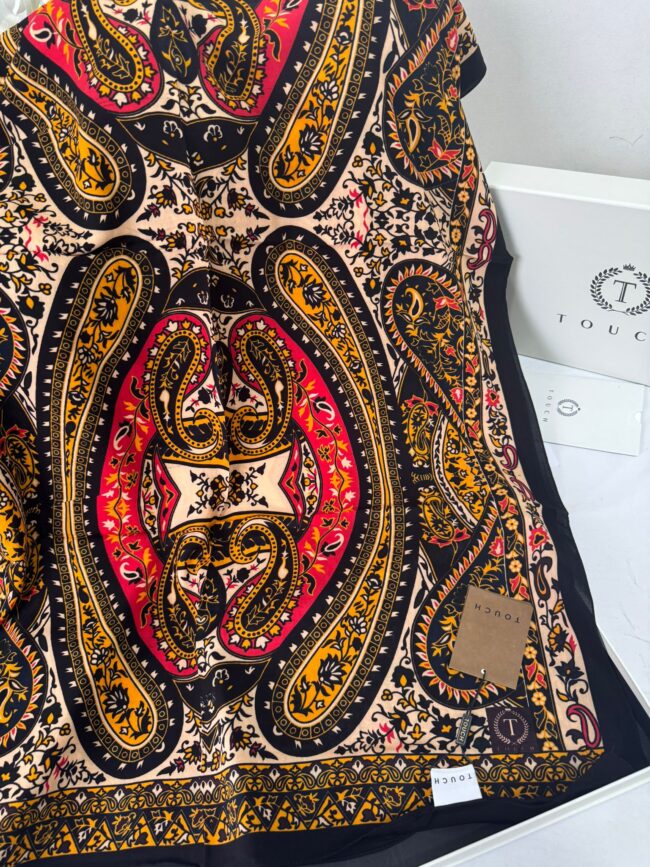 Touch İthal Etnik Desen Yün İpek Şal- 35110 – Siyah Turuncu