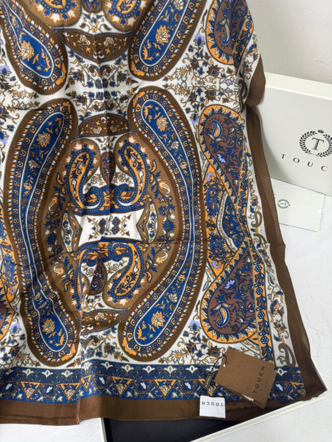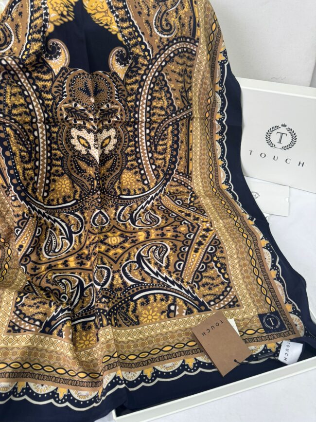Touch İthal Etnik Desen Pamuk İpek Şal- 35440 – Kahve Lacivert