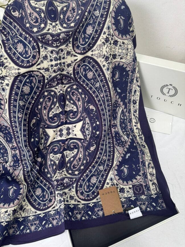 Touch İthal Etnik Desen Pamuk İpek Şal -35330 – Lacivert