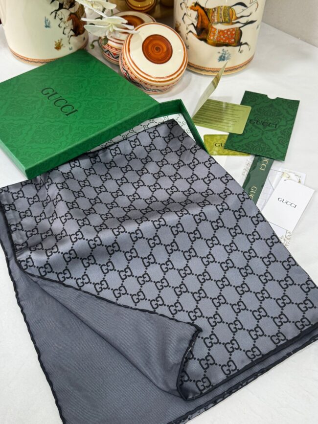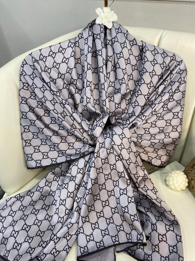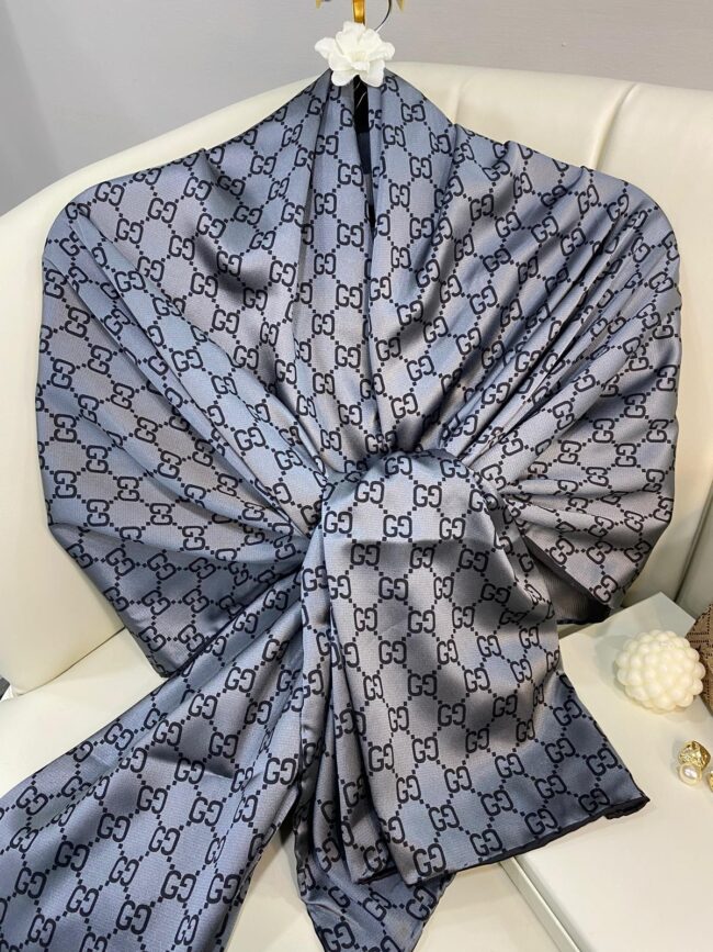 NEW GUCCİ Desen Pamuk İpek Şal-64750- Bebe Mavisi