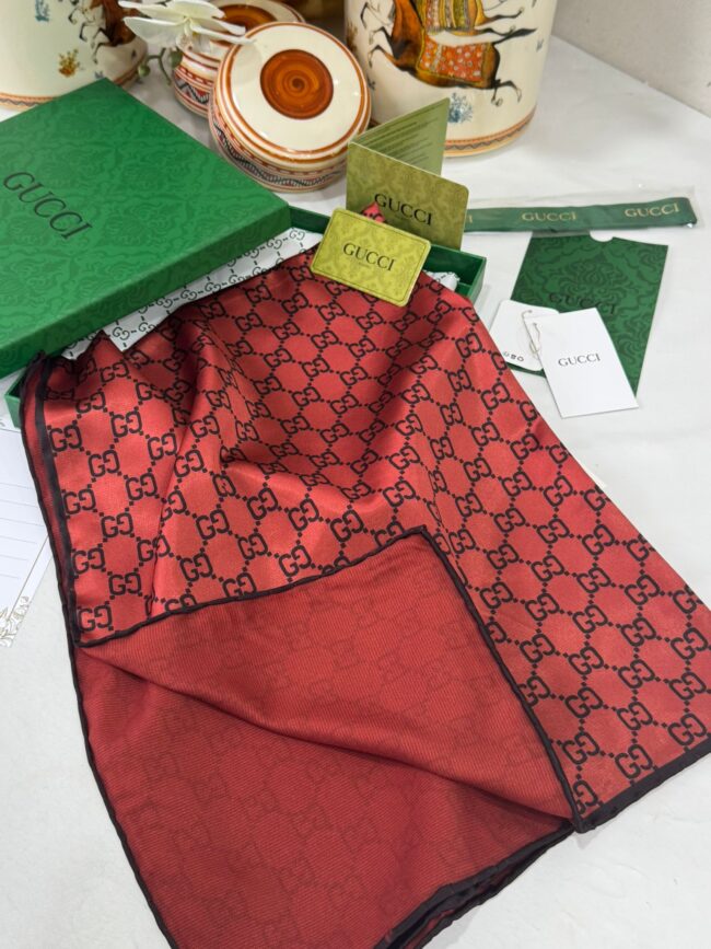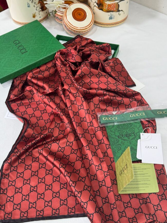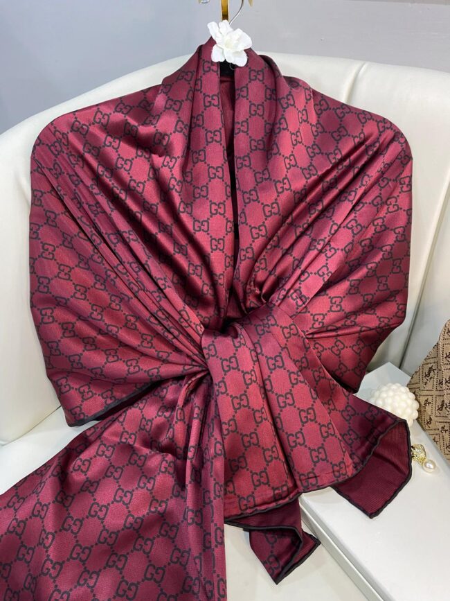 NEW GUCCİ Desen Pamuk İpek Şal-64750- Bordo