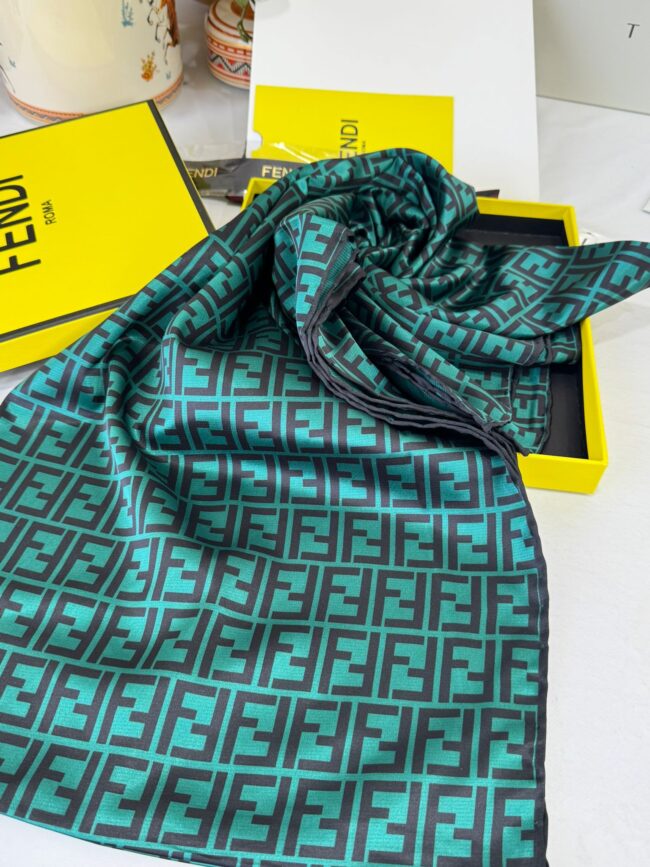 İthal Çifttaraflı Fendi İnci Vual İpek Şal-14500 -Zümrüt