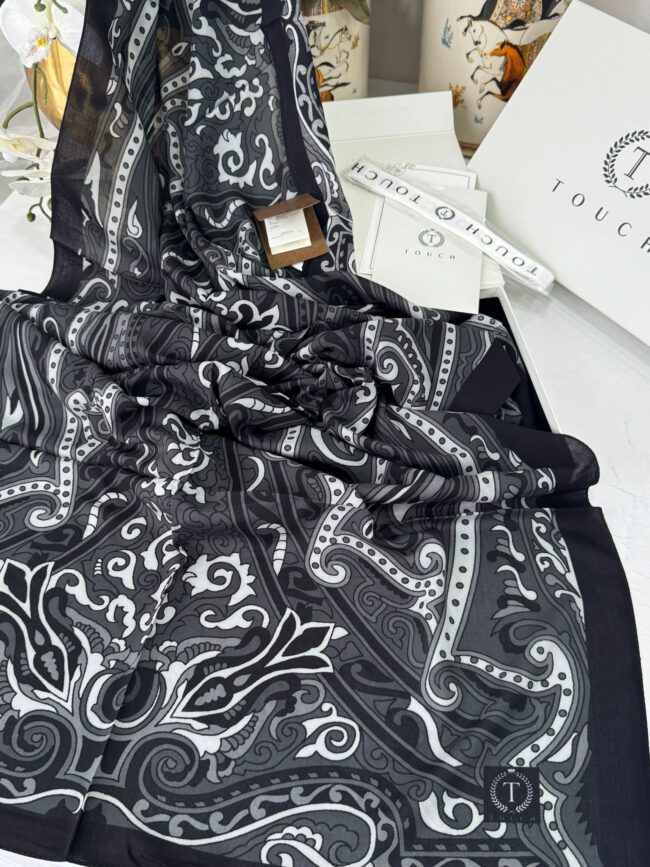 Touch İthal Etnik Desen Pamuk İpek Şal 63458 – Siyah