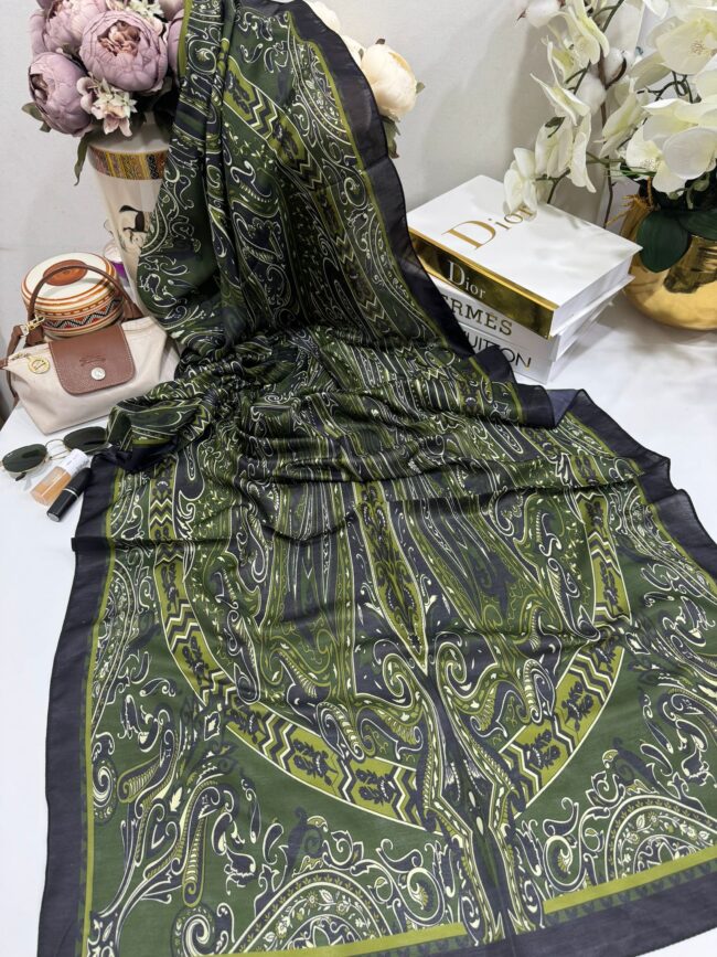Etro Pamuk İpek Şal 52340 – Asker Yeşili