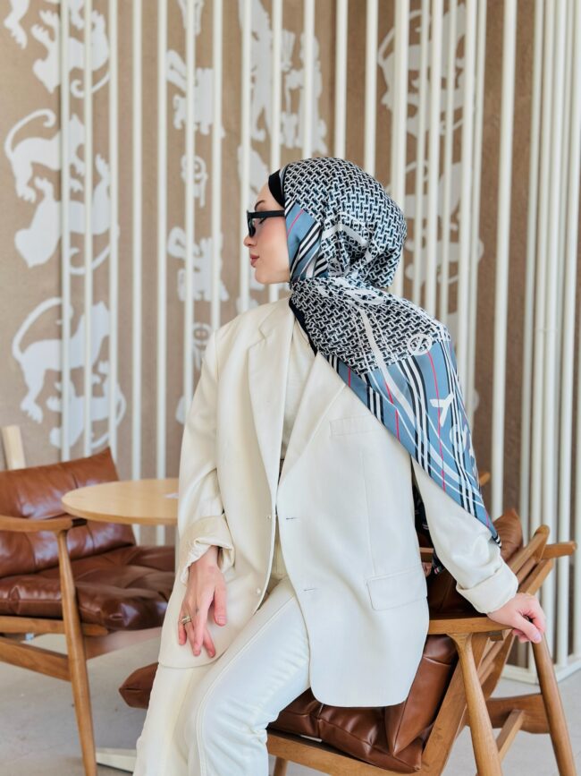 Burberry Çift Taraflı İthal Vual İpel Şal 78631 – Buz Mavisi – Siyah