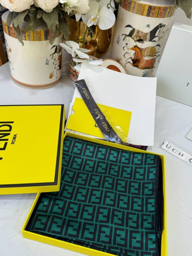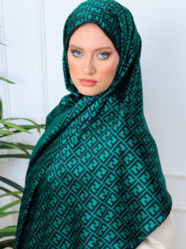 İthal Çifttaraflı Fendi İnci Vual İpek Şal-14500 -Zümrüt
