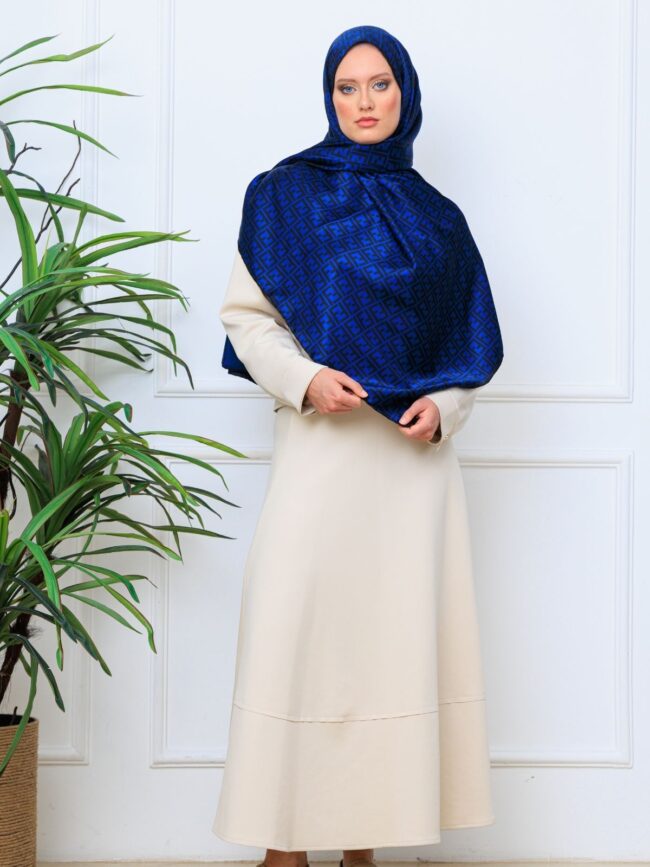İthal Çifttaraflı Fendi İnci Vual İpek Şal-14500 -Lacivert