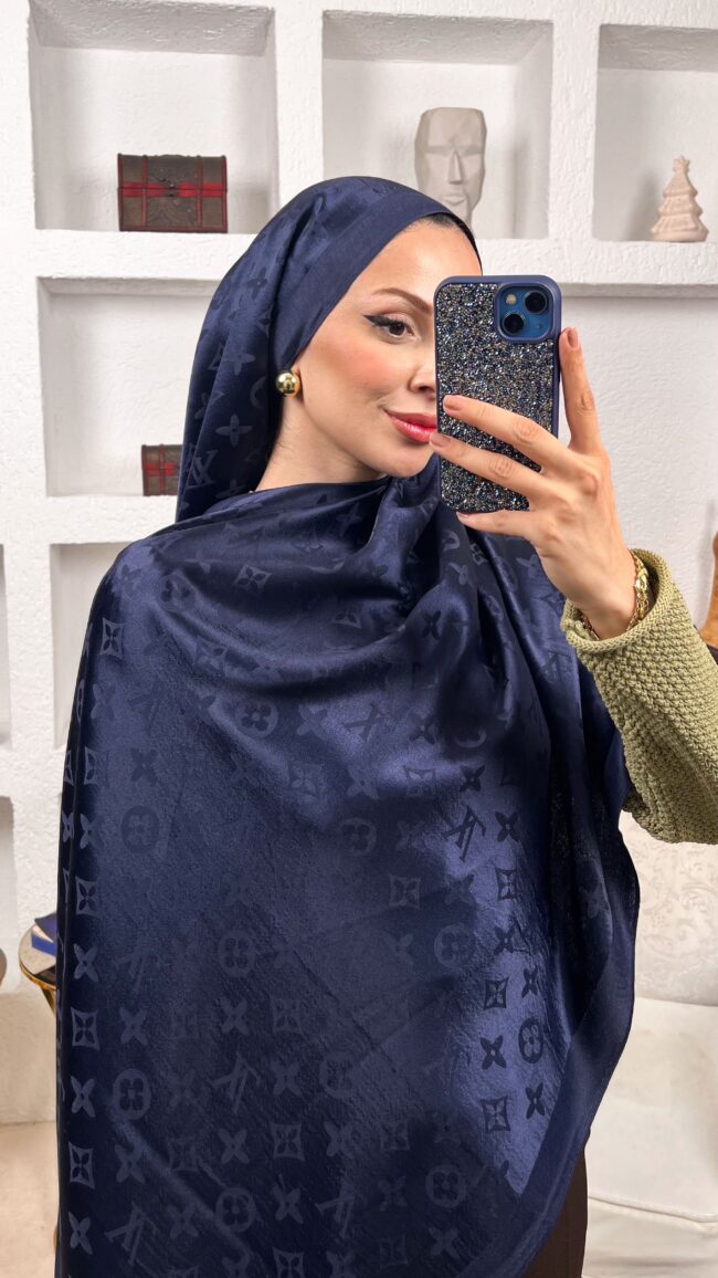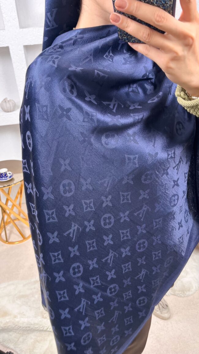İthal Lv Pamuk Yün İpek Şal 49104 – Lacivert
