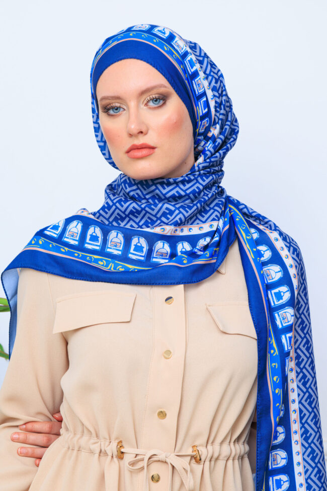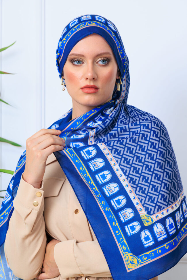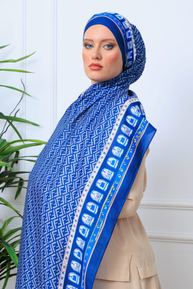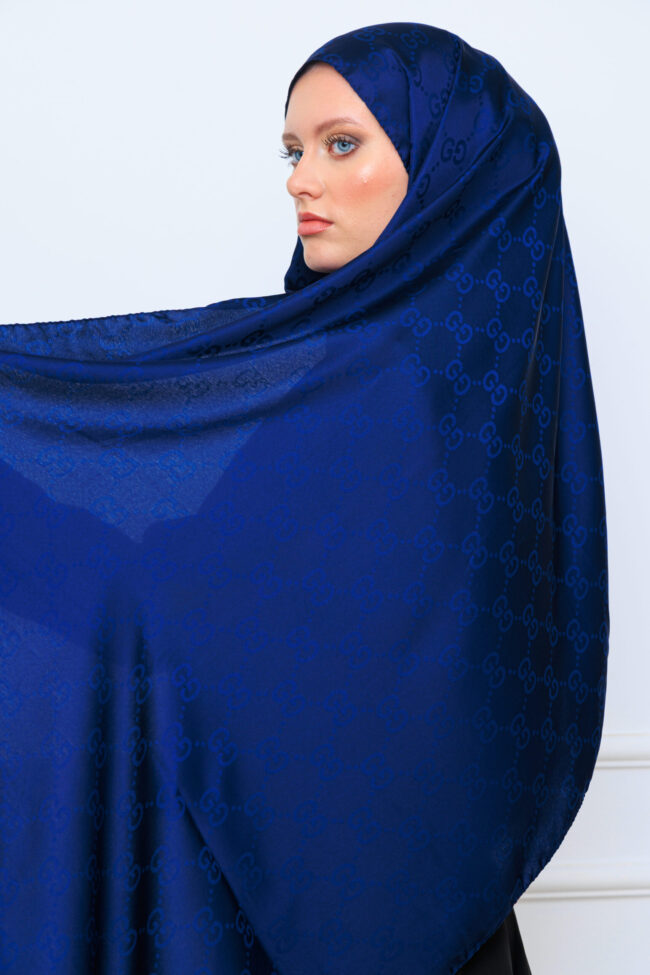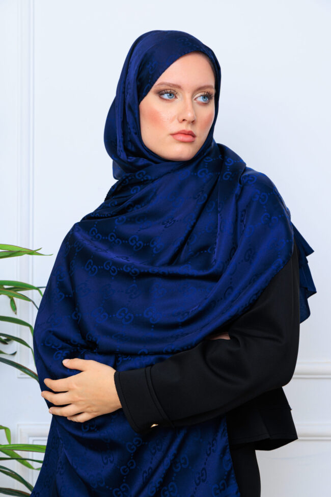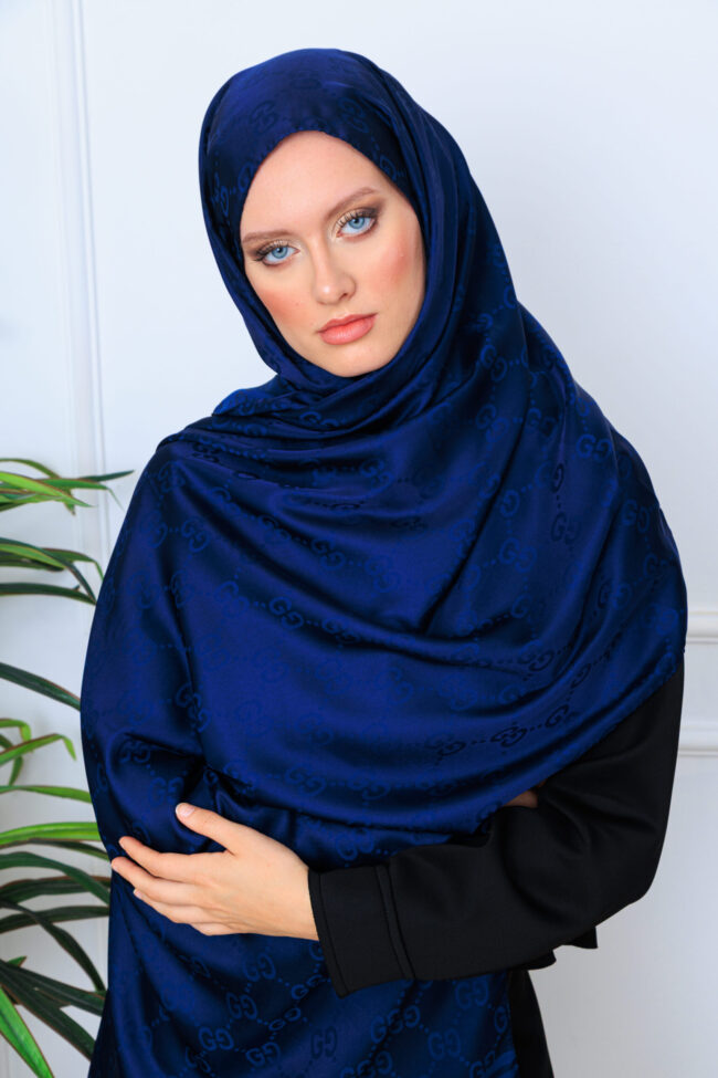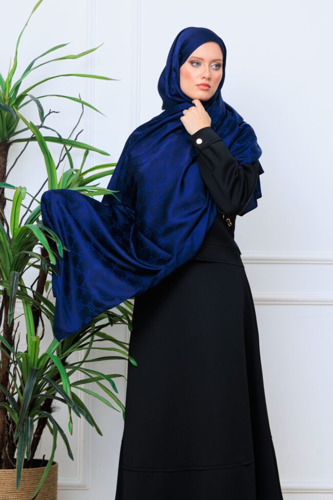 G Desen Pamuk İpeksi Jakar Şal – Lacivert