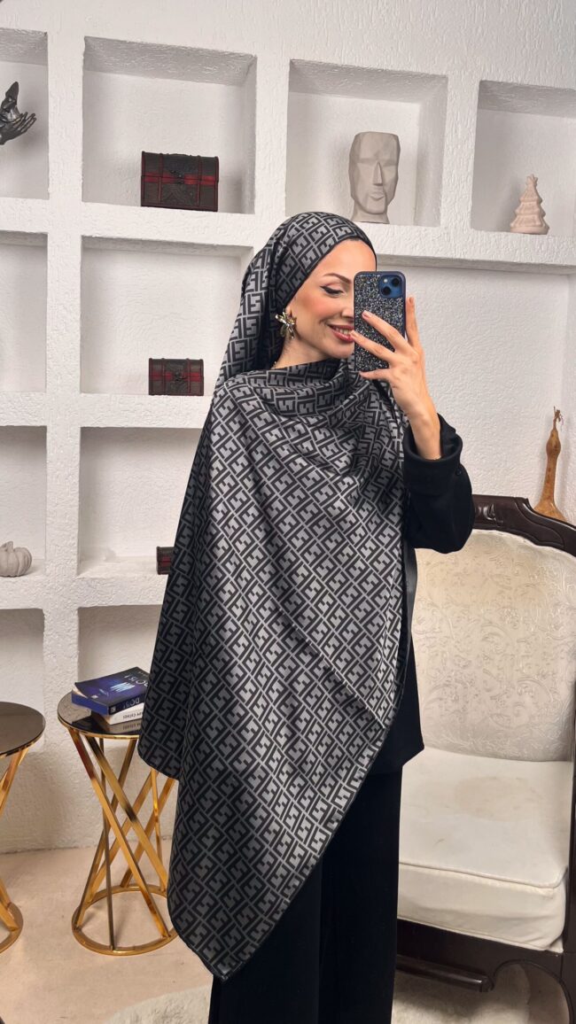 İthal Çifttaraflı Fendi İnci Vual İpek Şal -Antrasit