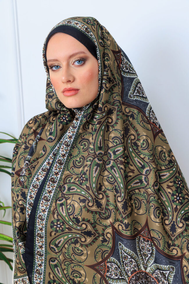 Etnik desen pamuk soft şal-321654 PETROL MAVİ/KAHVE
