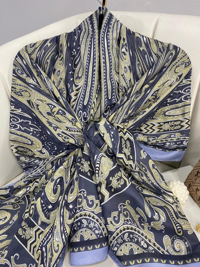 Touch İthal Etnik Desen Yün İpek Şal- 34550 – Lacivert vizon