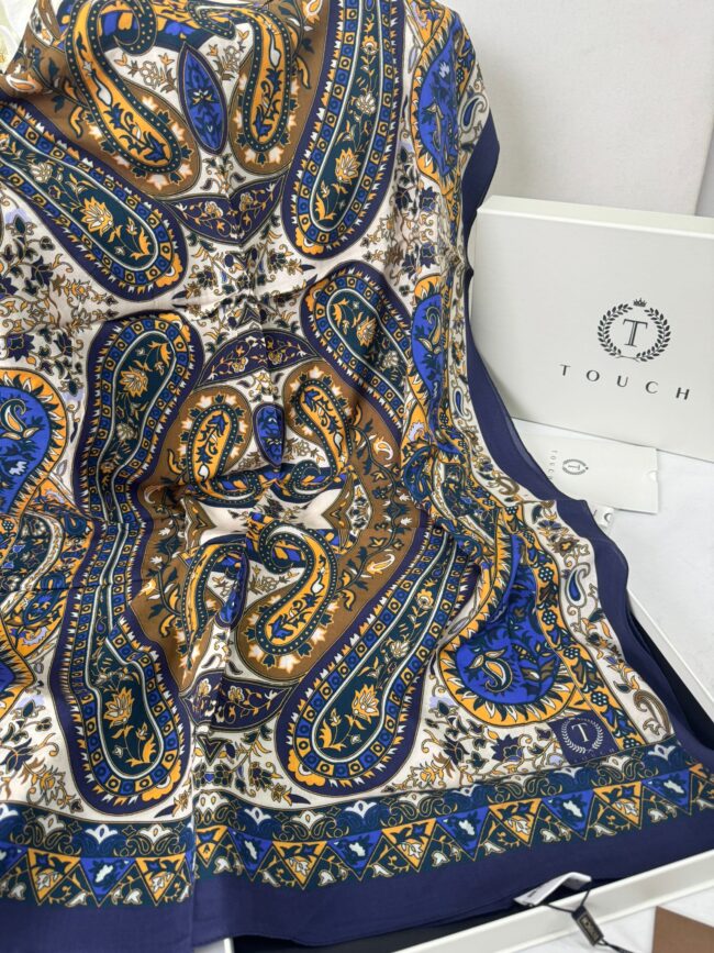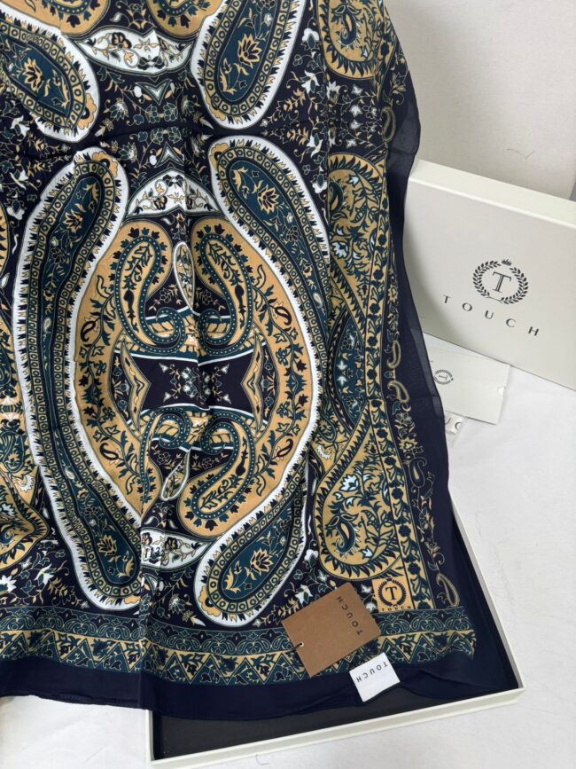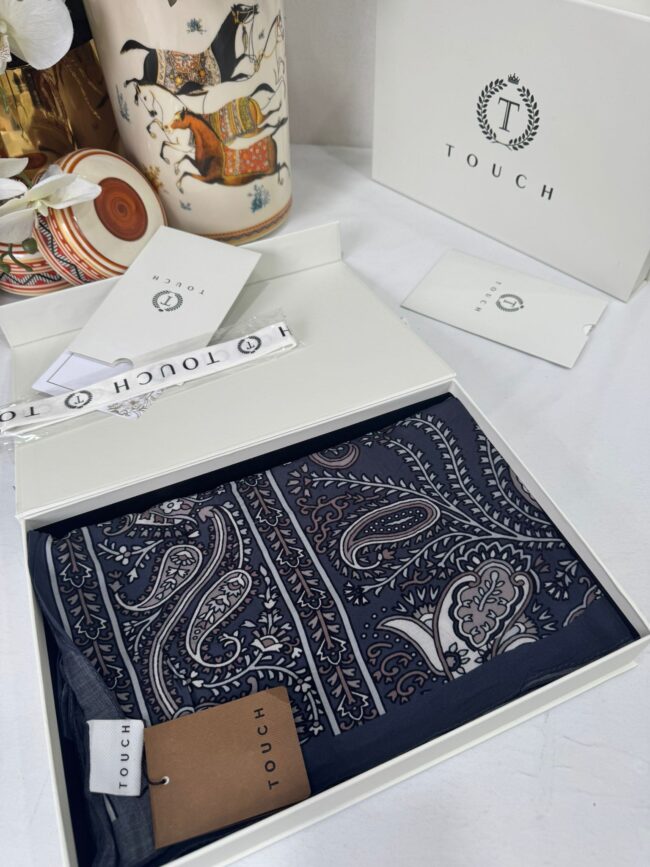 Touch İthal Etnik Desen Pamuk İpek Şal- 35440 – Lacivert Vizon
