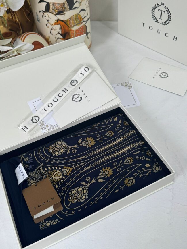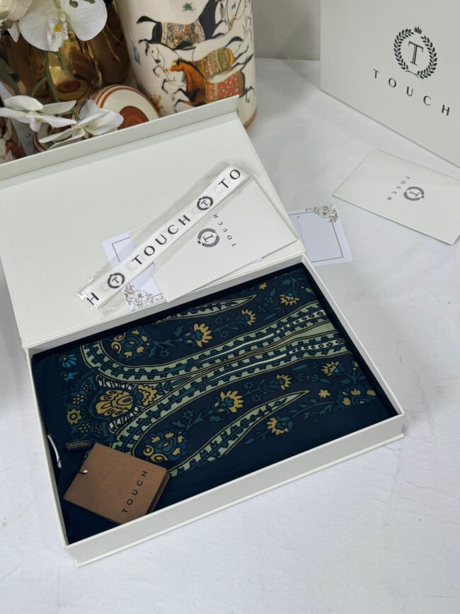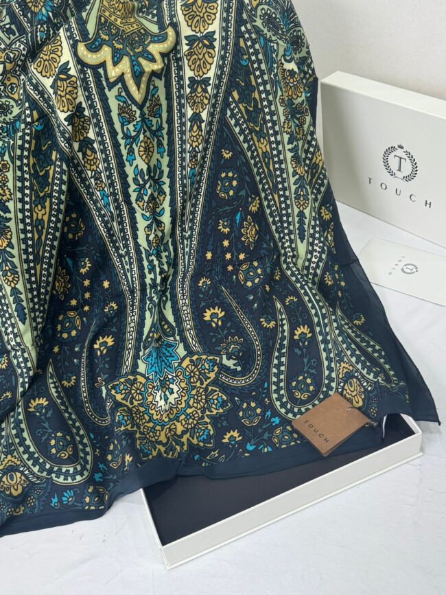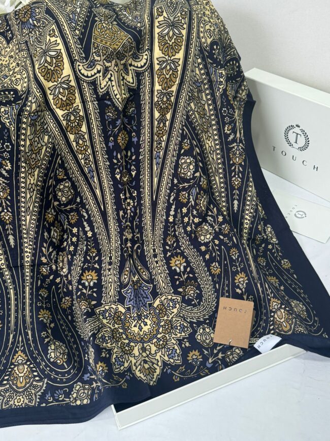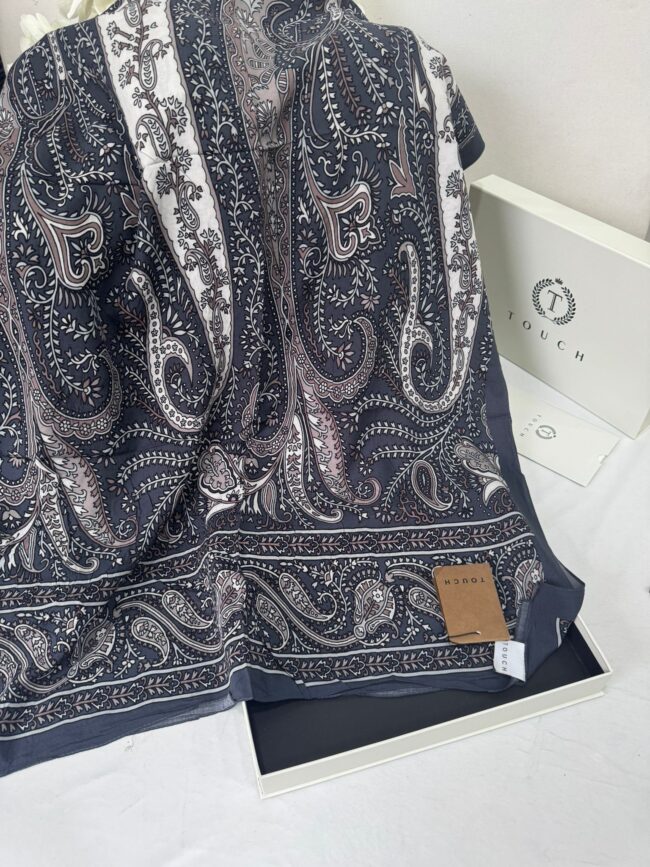 Touch İthal Etnik Desen Pamuk İpek Şal- 35440 – Lacivert Ekru