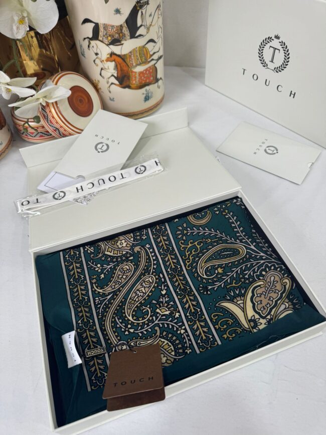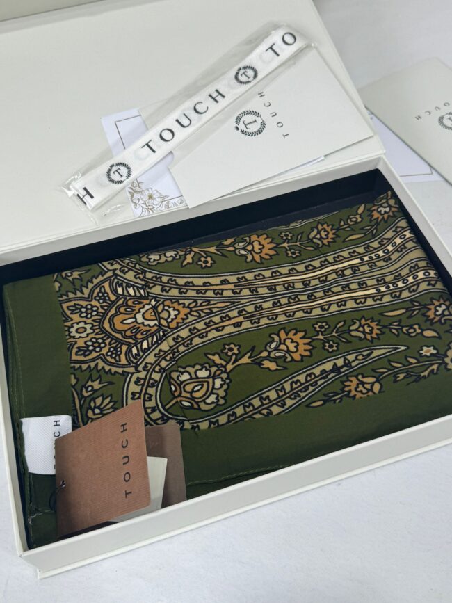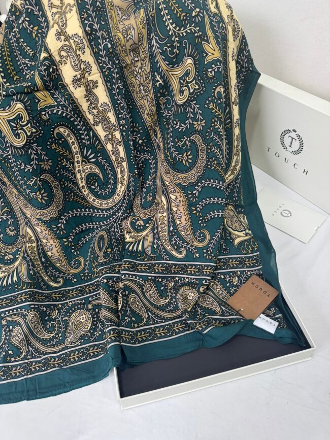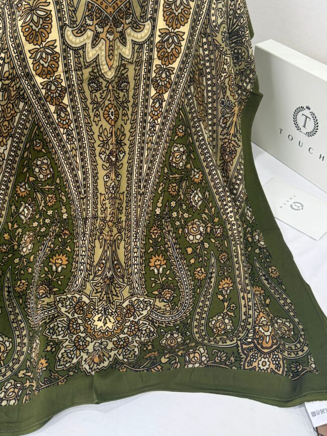Touch İthal Etnik Desen Pamuk İpek Şal- 99880 – Koyu Yeşil