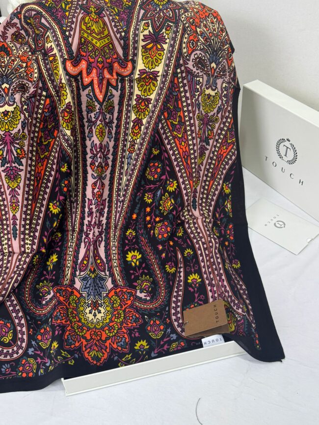 Touch İthal Etnik Desen Pamuk İpek Şal- 99880 – Siyah Lacivert