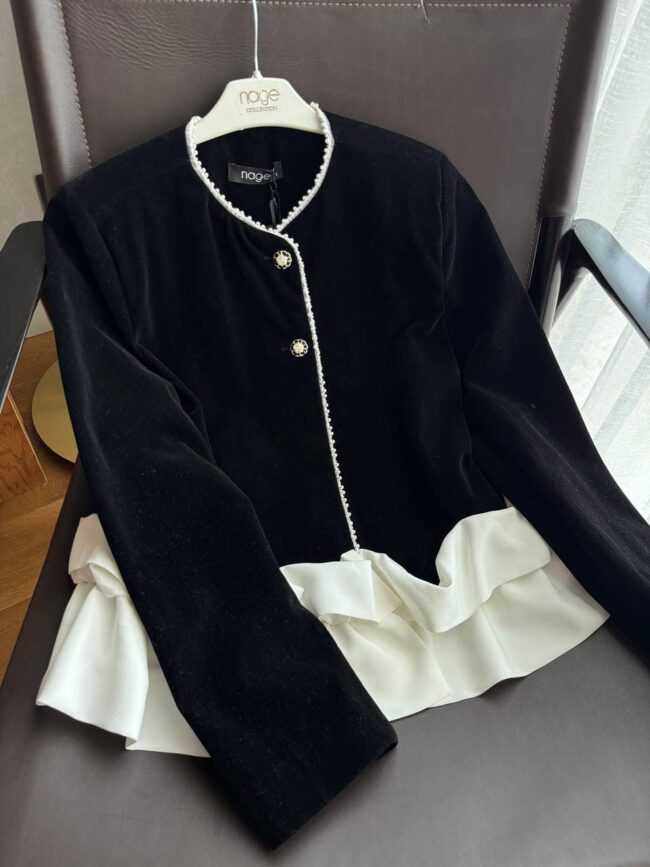 Boncuk Detay Kadife Paris Ceket CKT100262 – Siyah