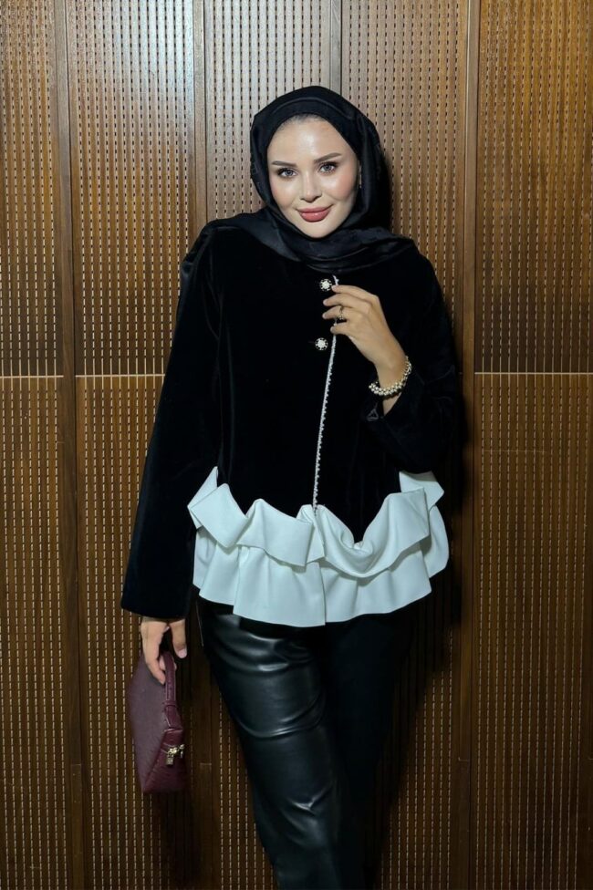 - Kumaş: Esnek ve dökümlü yapısıyla konfor sağlayan bir astar üzerine işlenmiş yoğun pul payetlere sahiptir.
