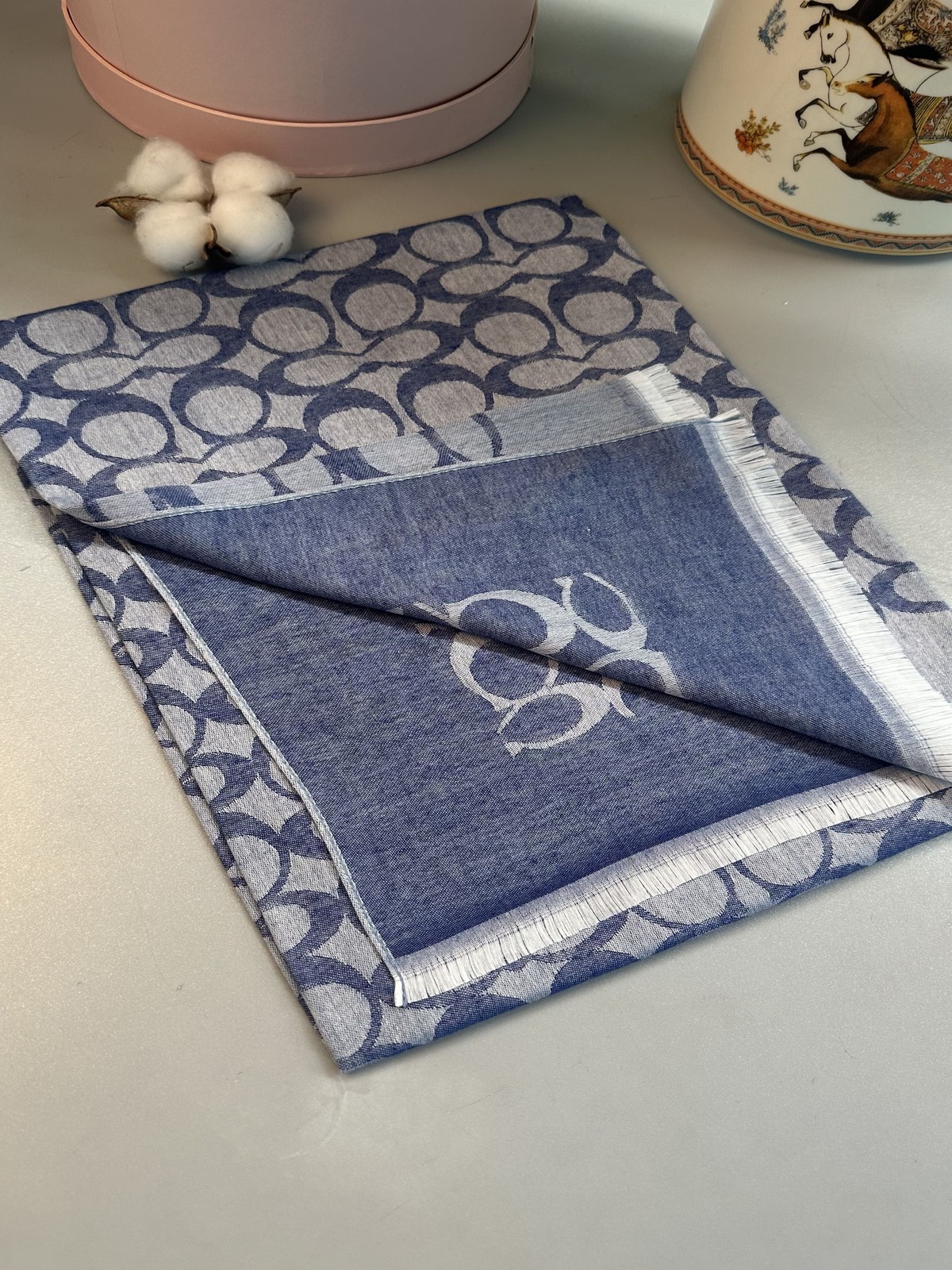 A Kalite Yün İpek Çift Taraflı Marka Şal – Kot Mavisi