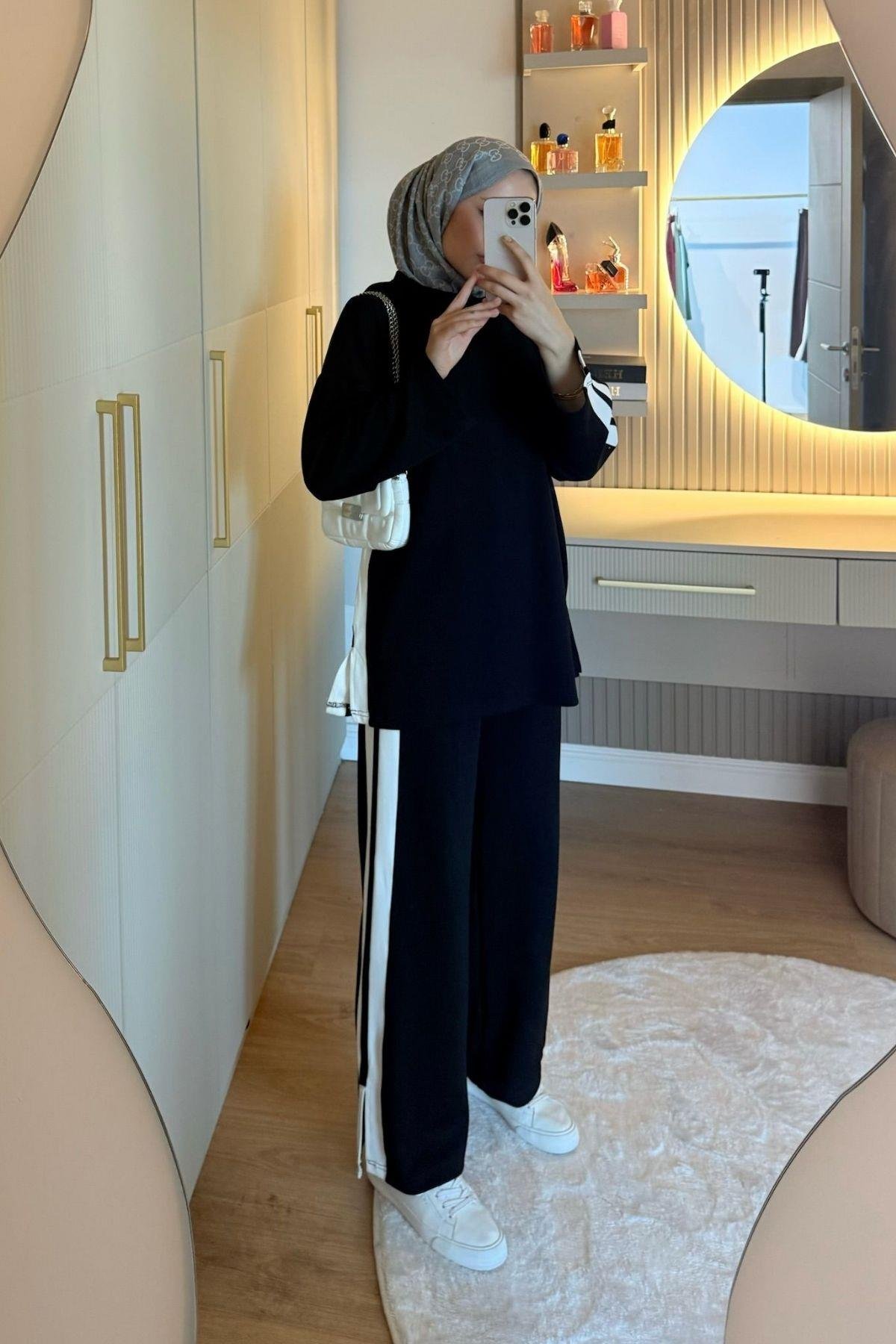 Hem günlük şıklıkta hem özel davetlerde rahatlıkla tercih edilebilecek bu takım, modern zarafeti geleneksel dokunuşlarla buluşturuyor.