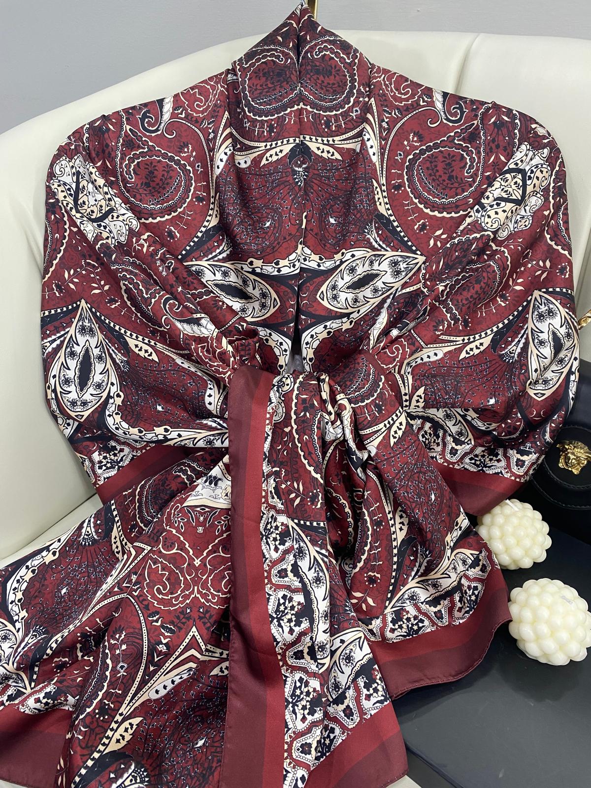Batik Desen Vual İpek Şal -259685-Vişne Kırmızısı