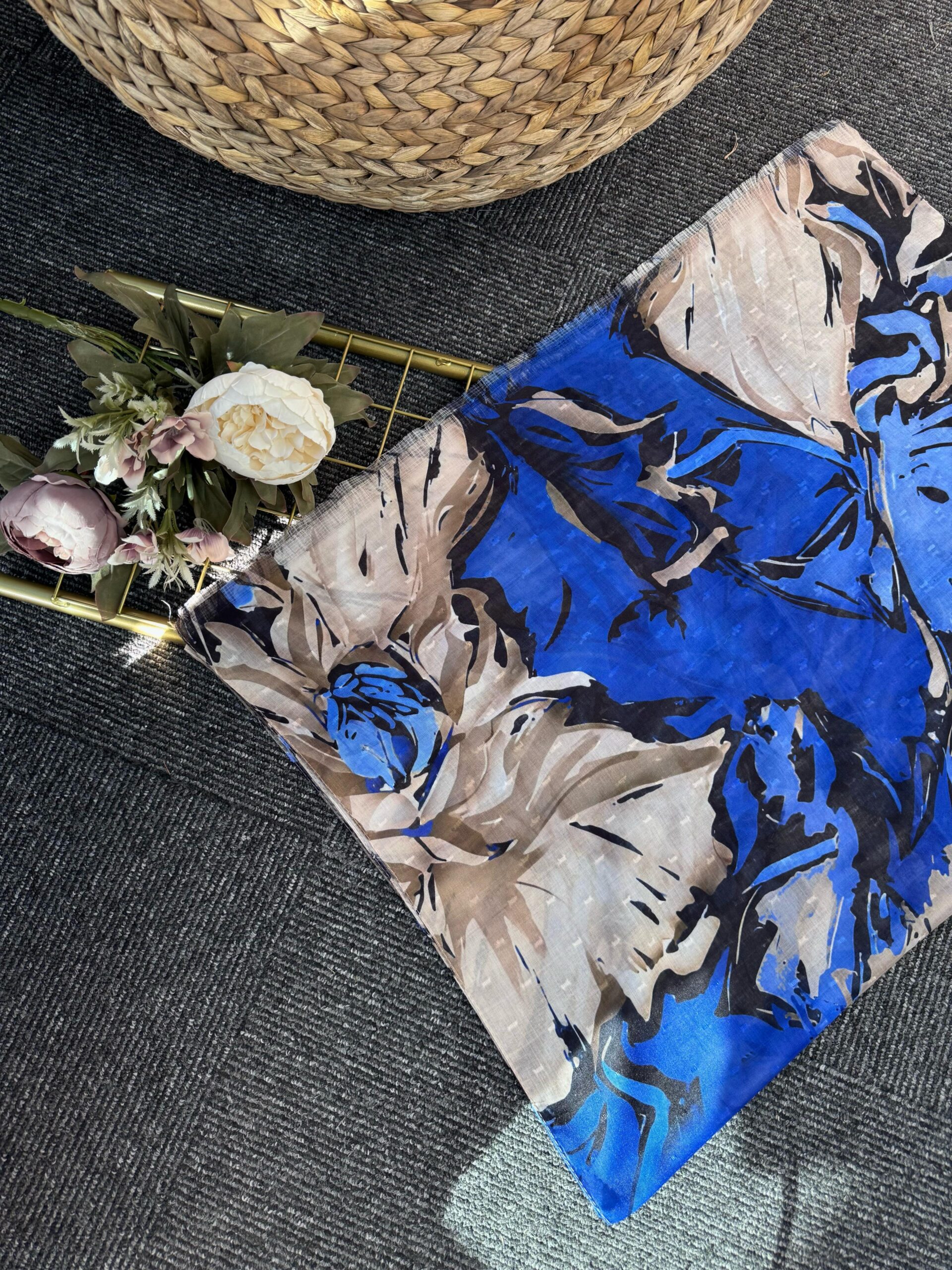 Dalgaların Dansı Naturel Pamuk Şal-443444-Mavi