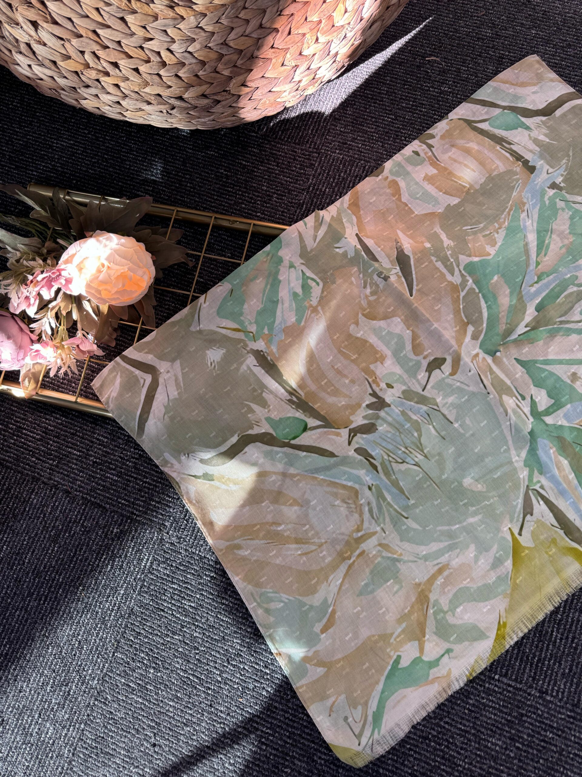 Soft pastel ve zengin tonların ustalıkla harmanlandığı bu şal, floral detaylar ve saray esintili desenleriyle dikkat çekiyor. Günlük kombinlerinize zarif bir dokunuş katarken, özel günlerde klasik şıklığınızı tamamlayacak çok yönlü bir aksesuardır.