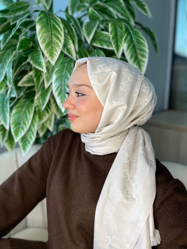 G Desenli İpek Kaşmir Çift Taraflı Şal 440344 – Bej