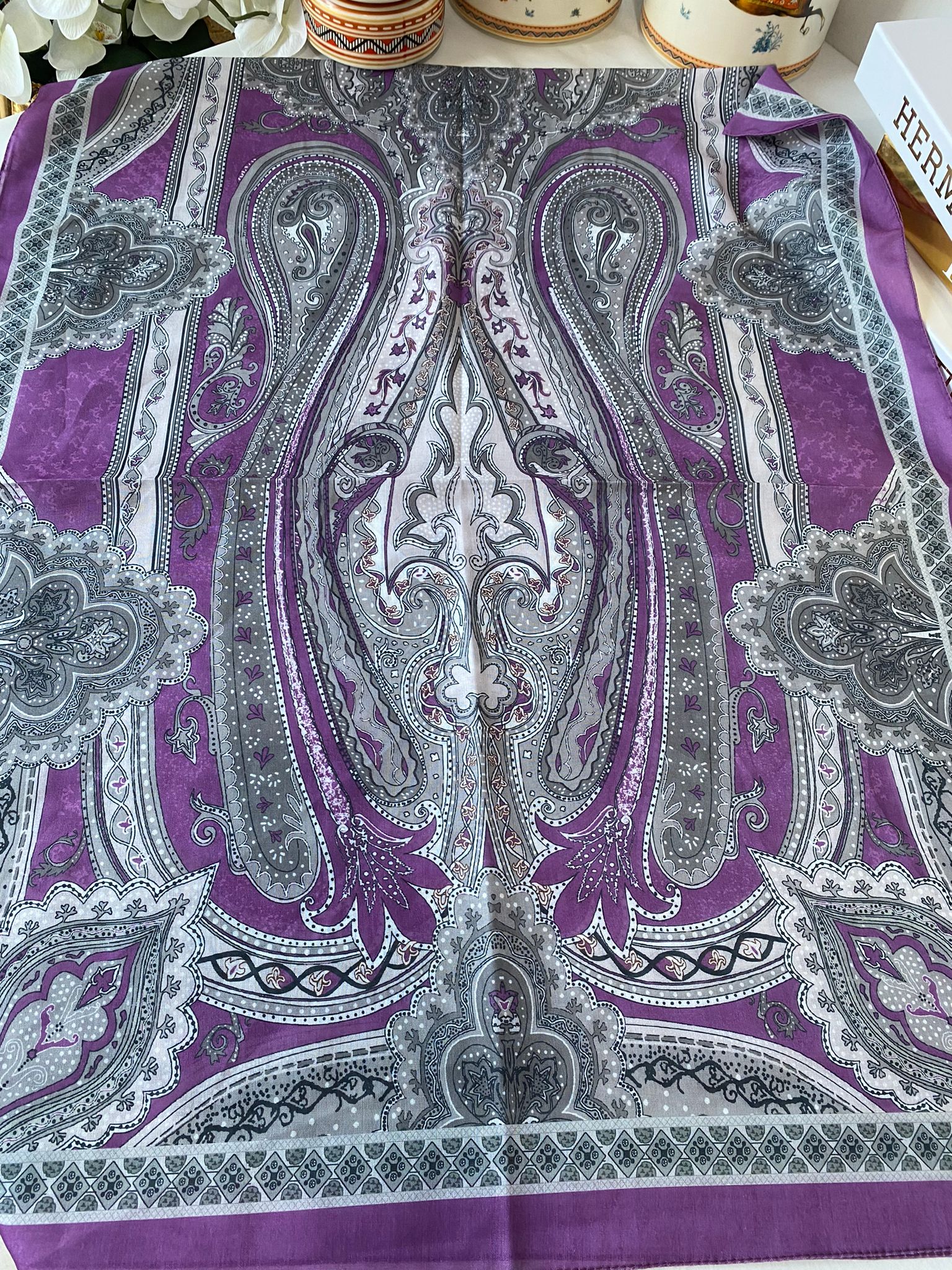 Etnik desen pamuk soft şal-321654 LEYLAK/GRİ