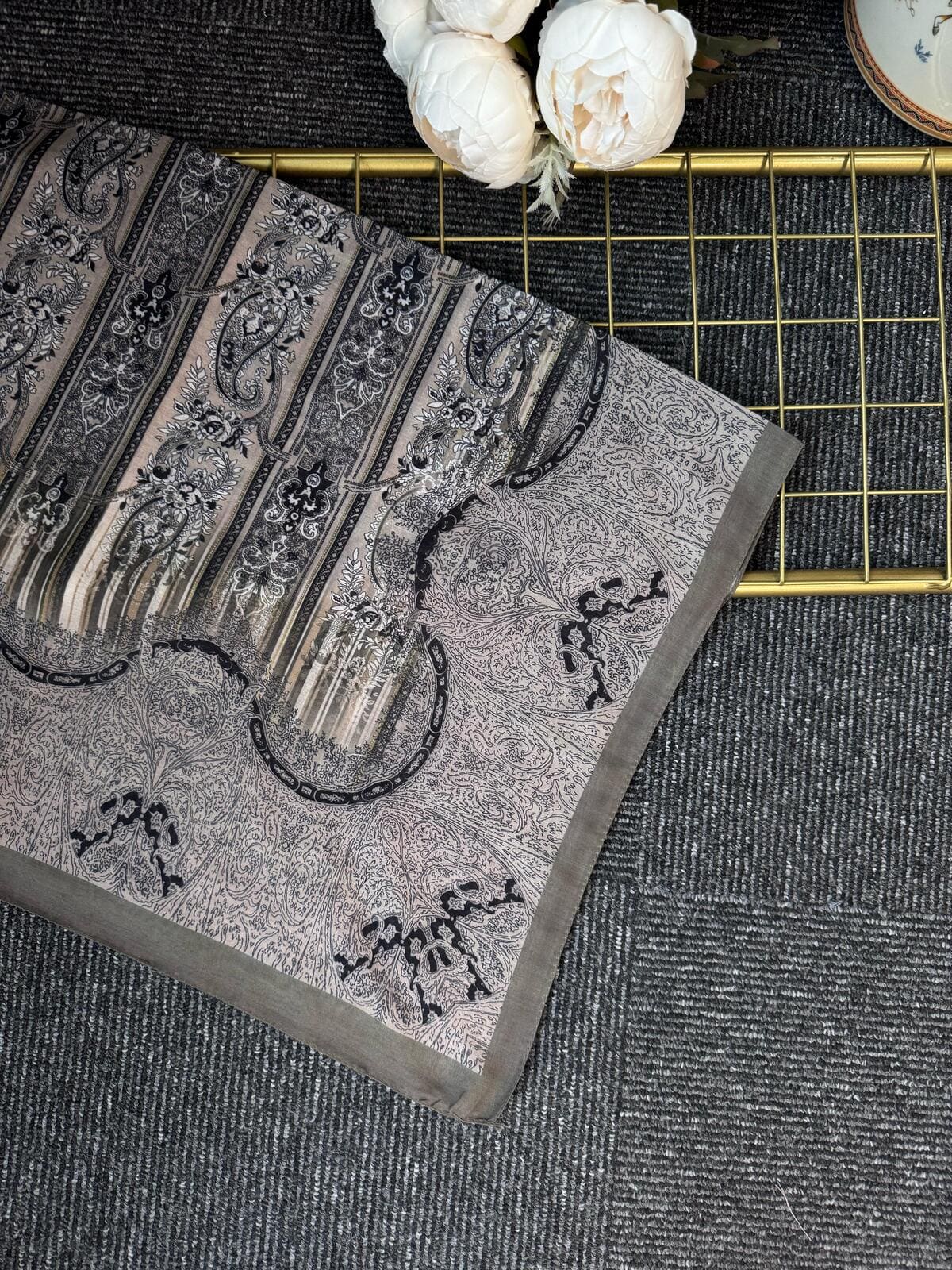 Doğal ipekten üretilmiş bu şal, etnik floral desenleriyle zamansız bir şıklık sunar. Hafif ve yumuşak dokusu sayesinde teninize nazikçe dokunur. Günlük stilinize zarif bir dokunuş katarken, özel gün kombinlerinde de özgün bir tamamlayıcı olarak öne çıkar.