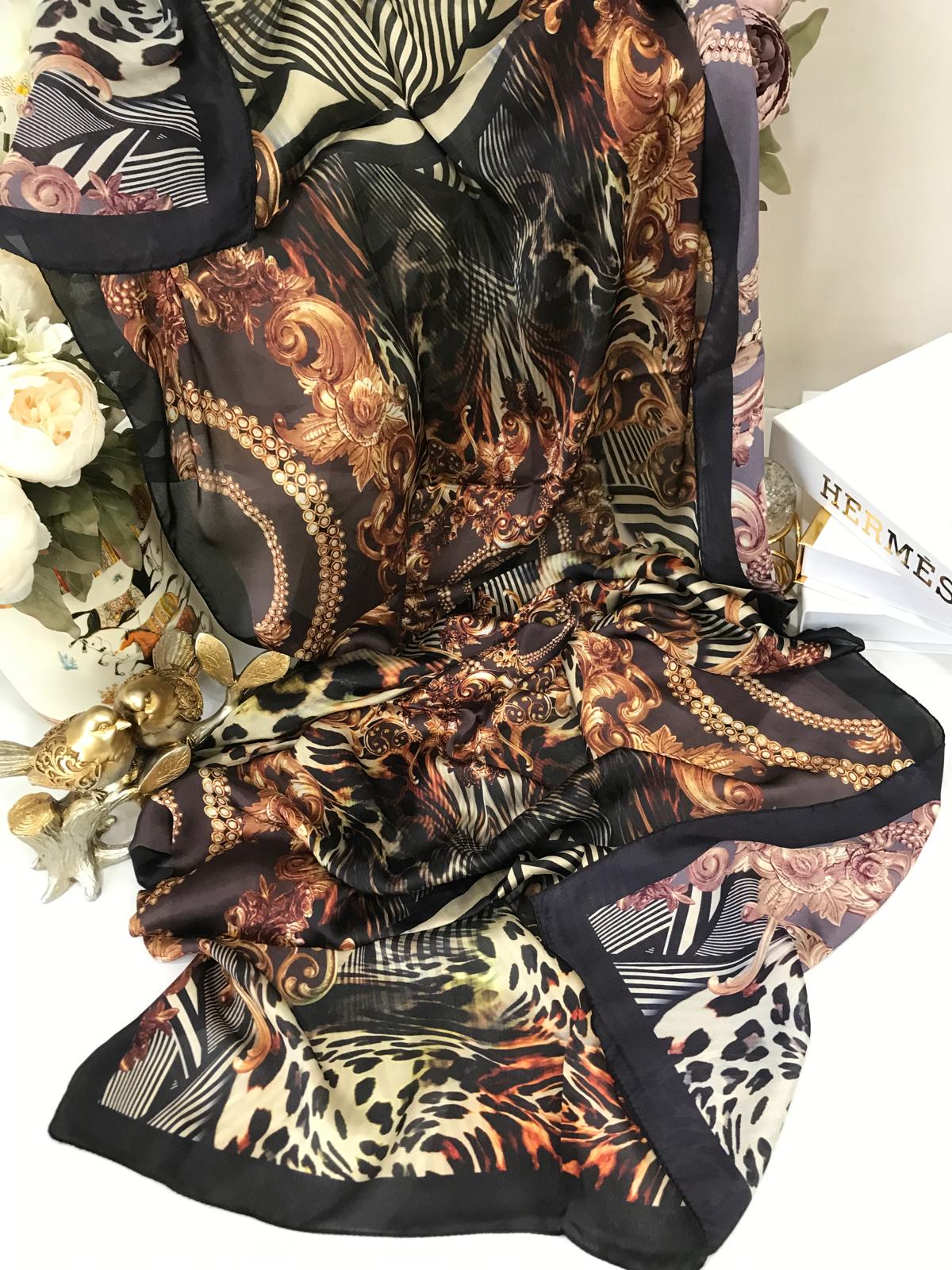 Etnik Leopar Desenli İthal Vual ipek Şal 14253 – Gold Siyah
