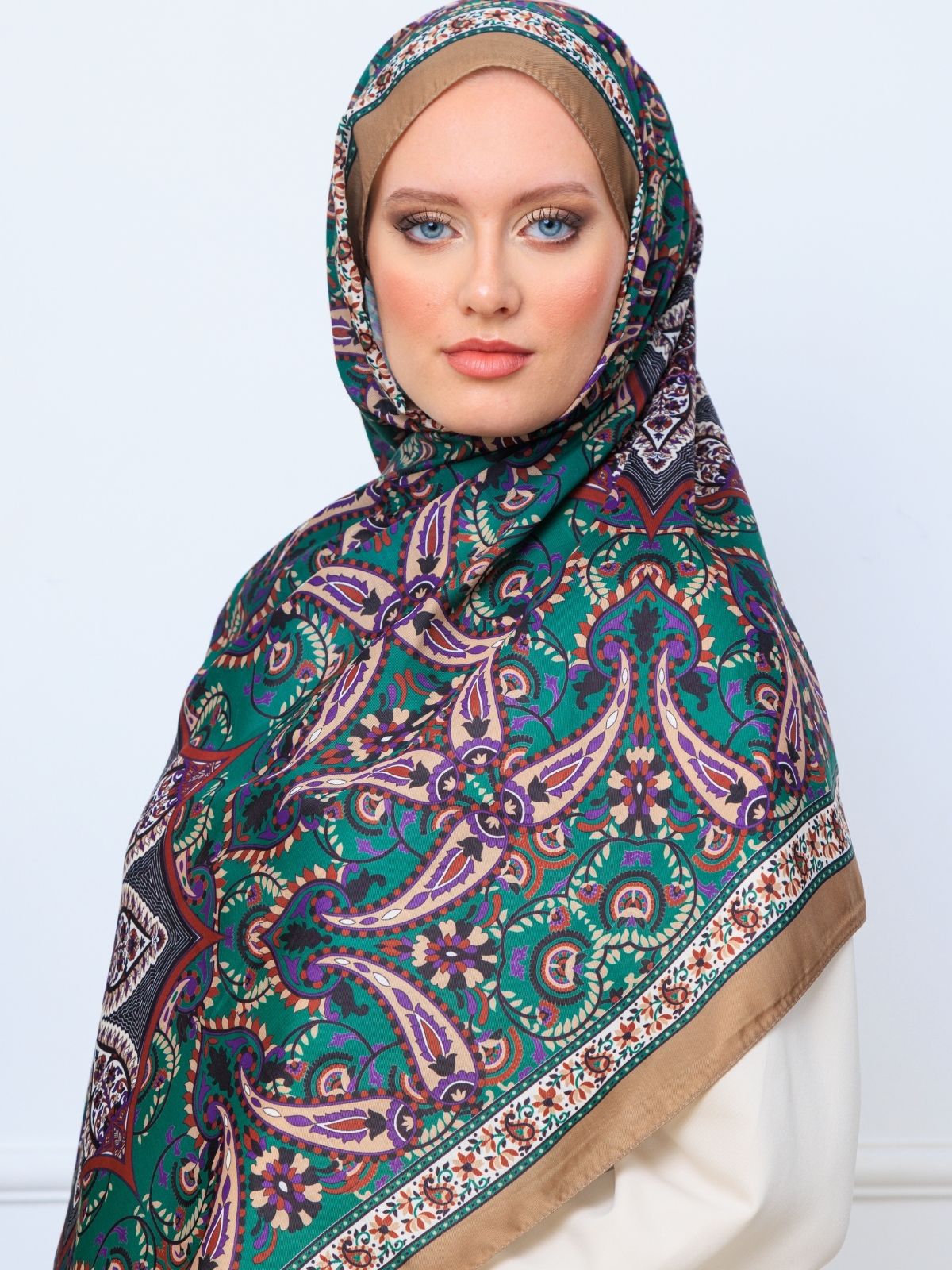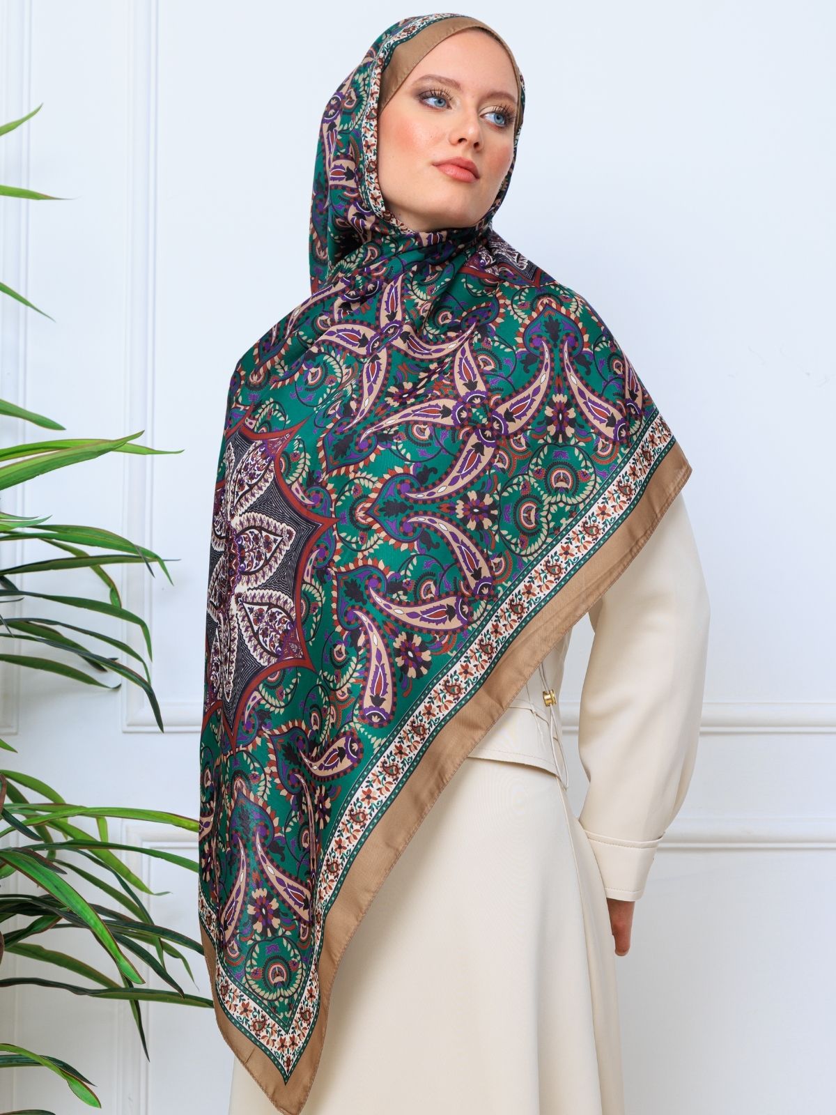 Etro Buta Desenli Pamuk Soft Şal – 377350 – Zümrüt Vizon