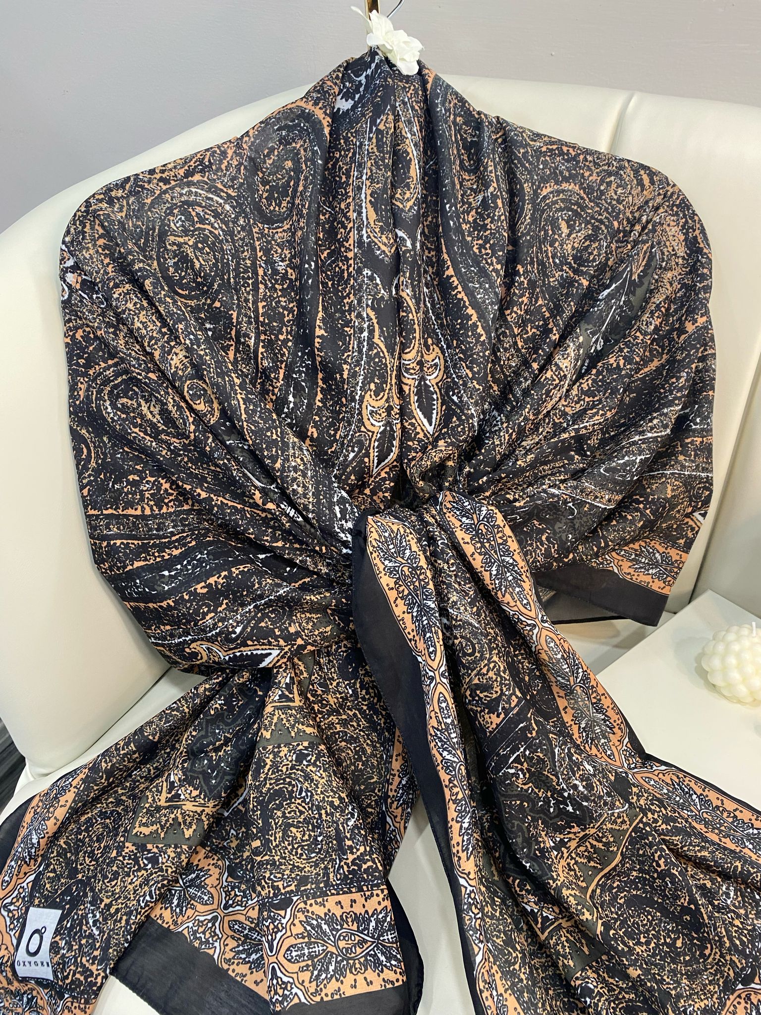 Etro Etnik Desen Pamuk İpek Şal – 23564 – BAKIR
