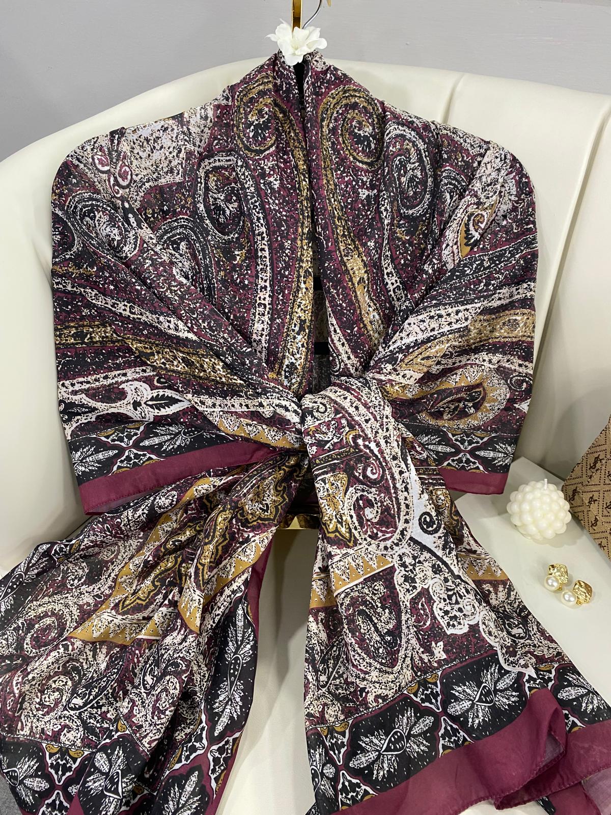 Etro Etnik Desen Pamuk İpek Şal – 23564 – ERİK MORU