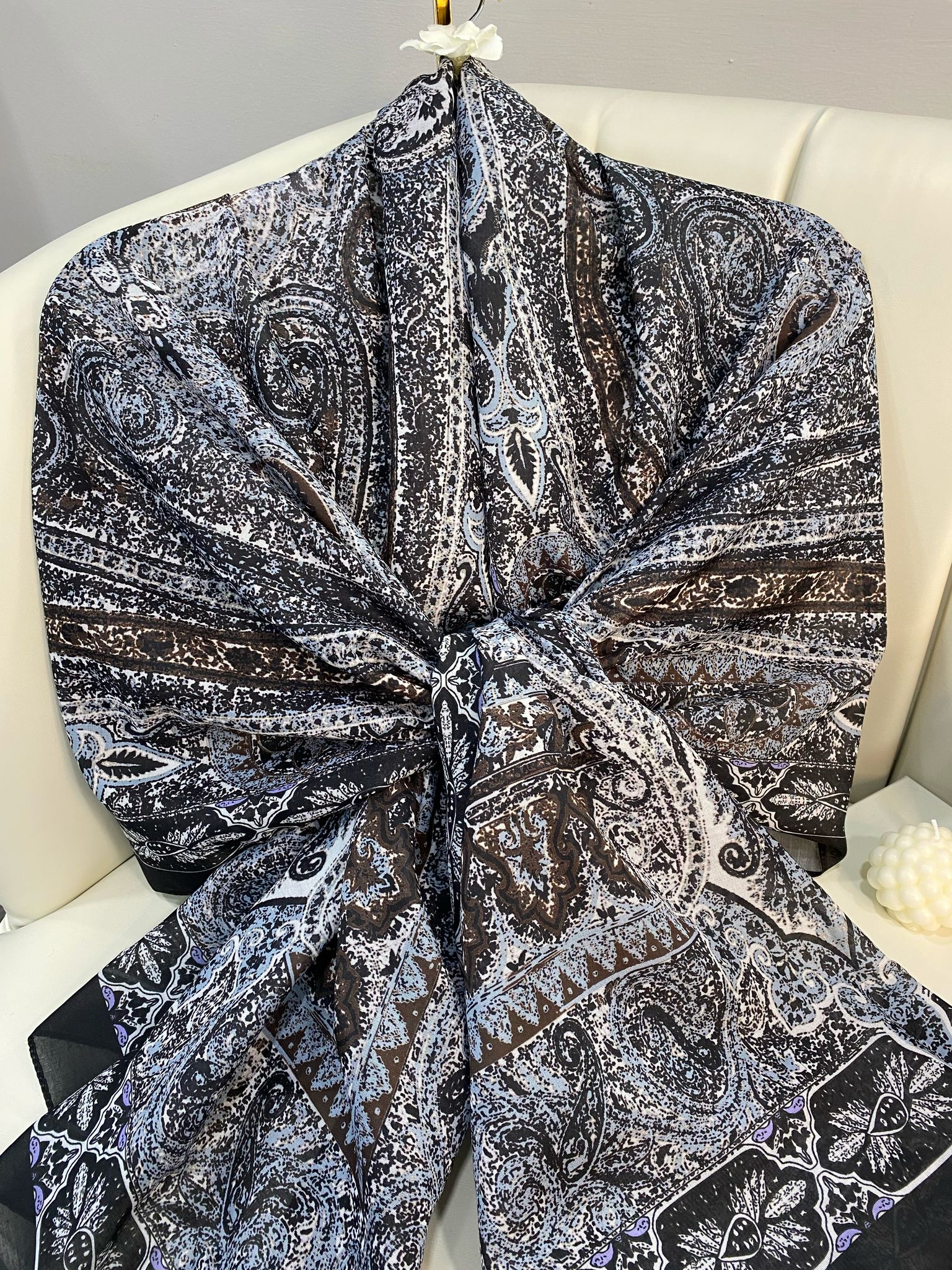 Etro Etnik Desen Pamuk İpek Şal -23564 Siyah Mor