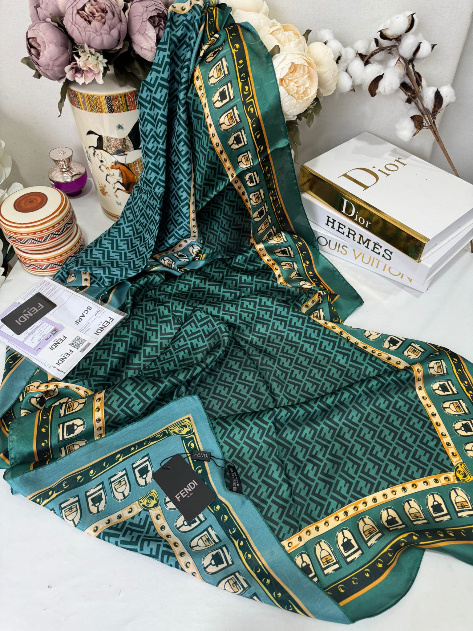 Fendi Çift Taraflı Vual İpek Şal 11143 – Zümrüt