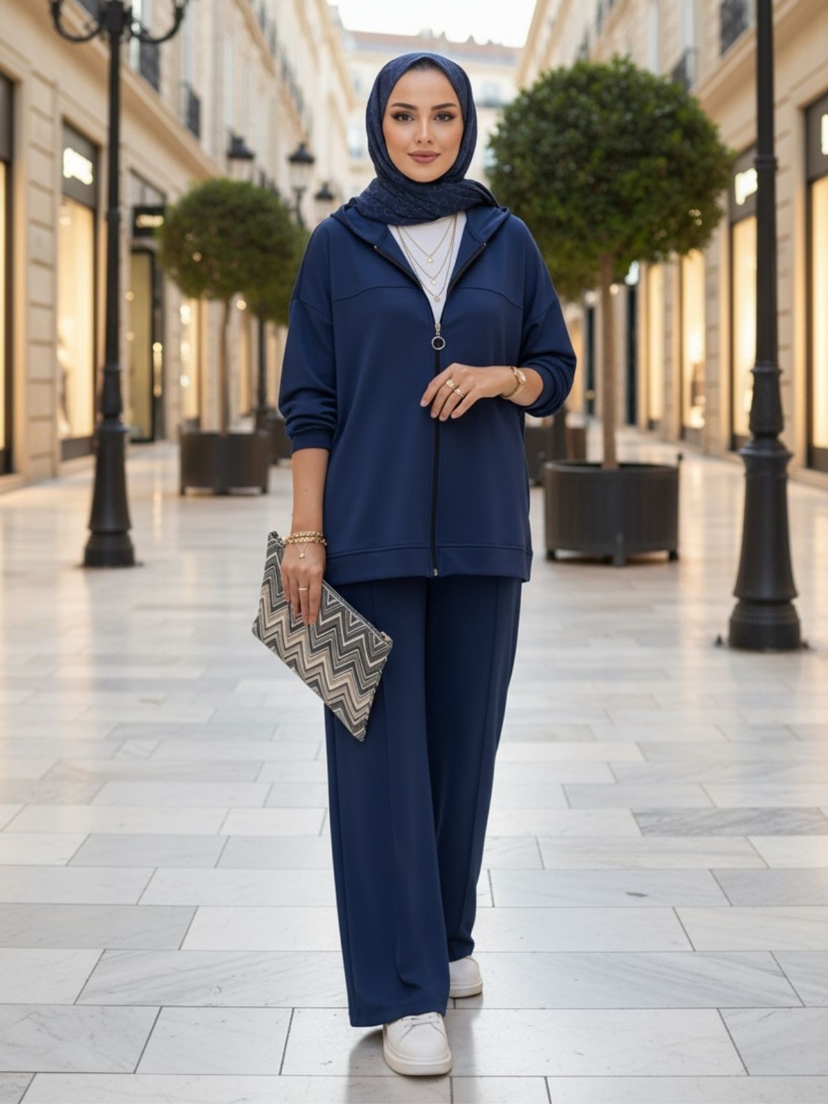 Hem günlük şıklıkta hem özel davetlerde rahatlıkla tercih edilebilecek bu takım, modern zarafeti geleneksel dokunuşlarla buluşturuyor.