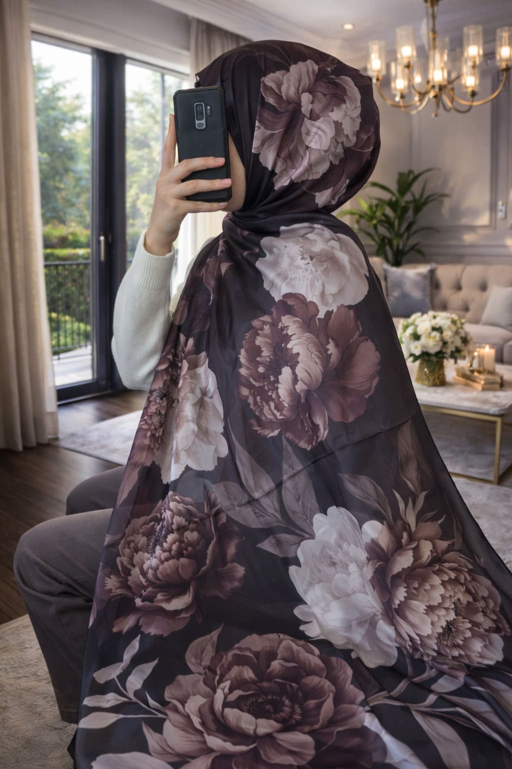Flora Vual İpek Şal 10100 – Siyah Nude
