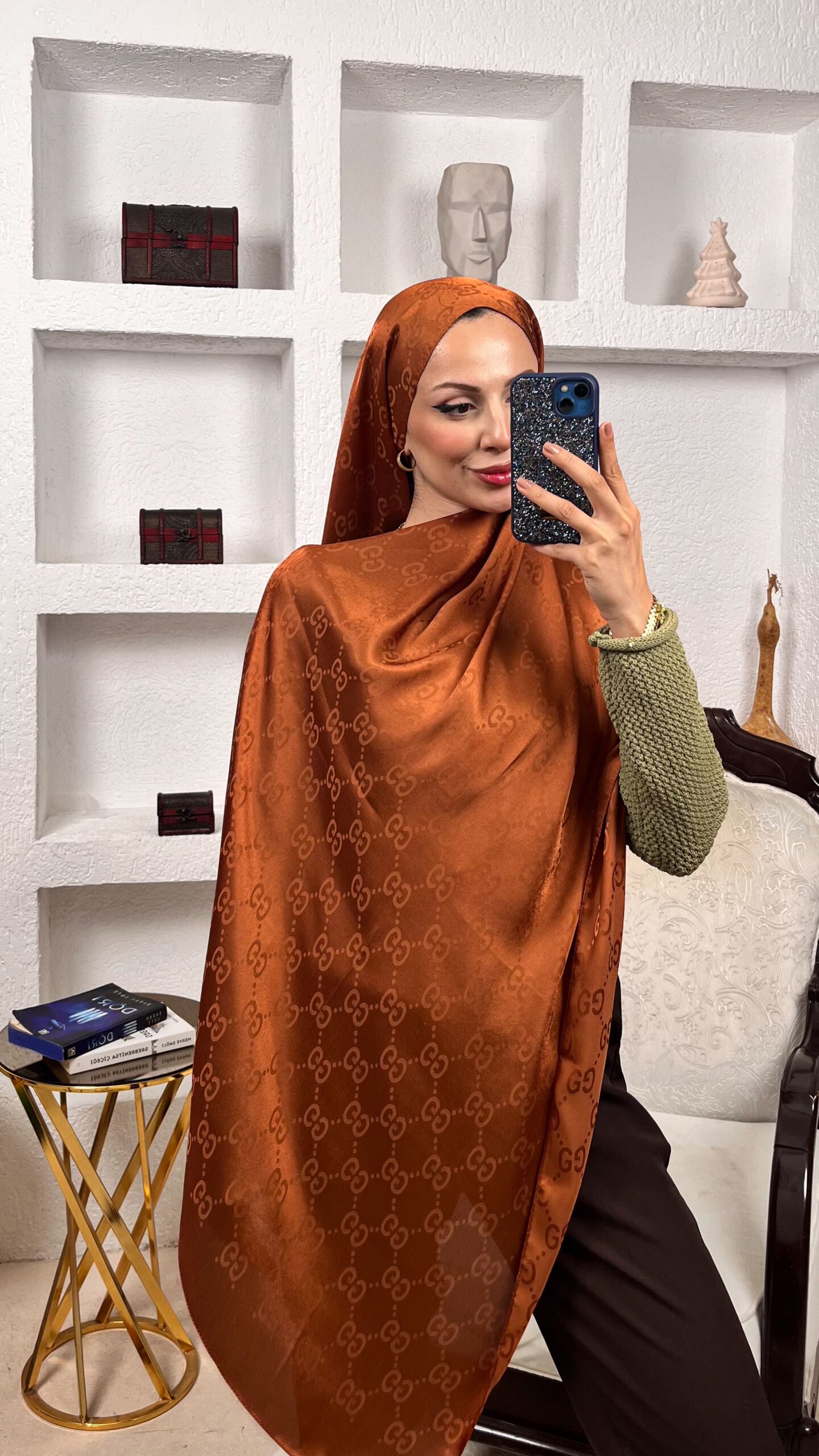 G Desen Pamuk İpeksi Jakar Şal 908204 - Kızıl Kahve