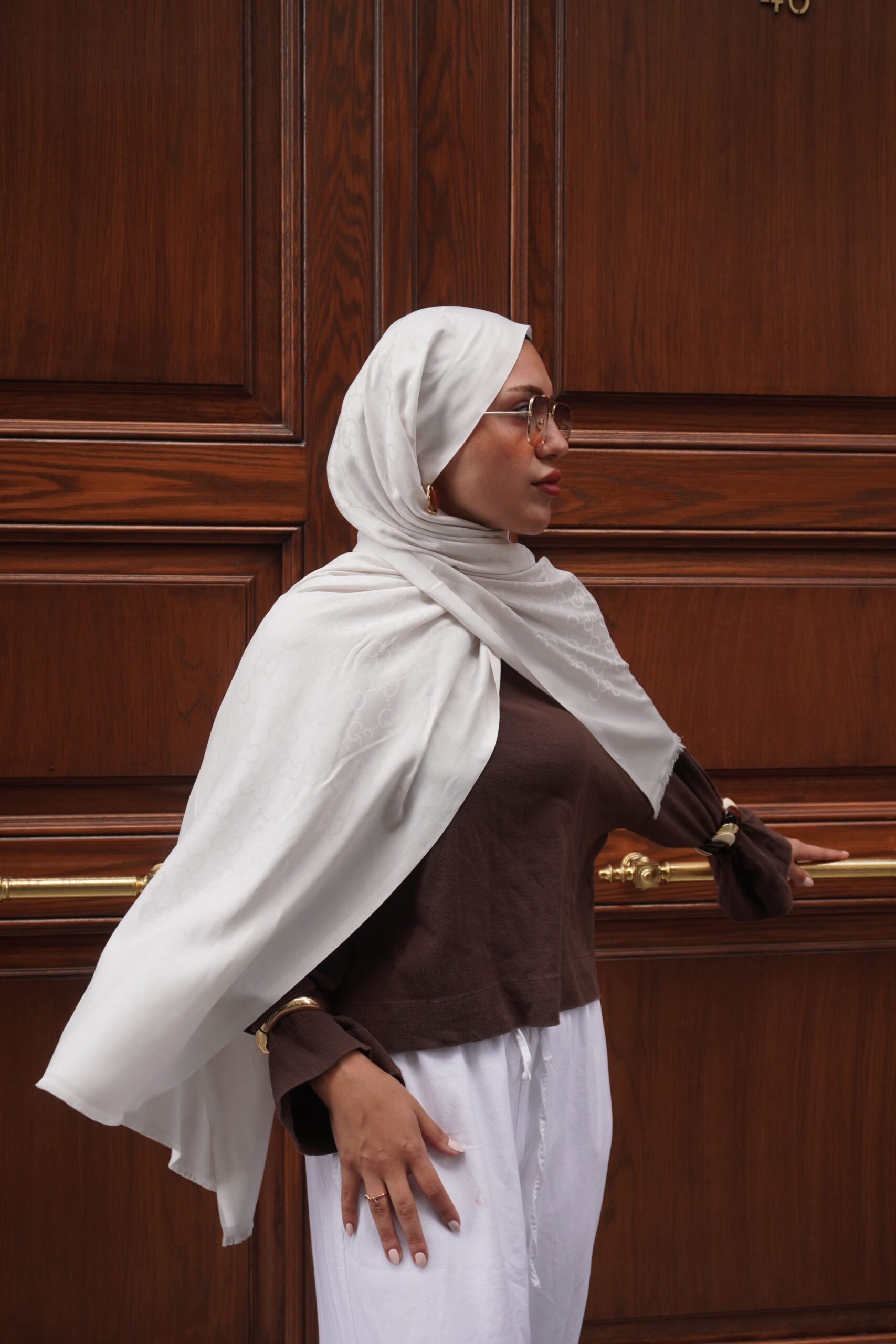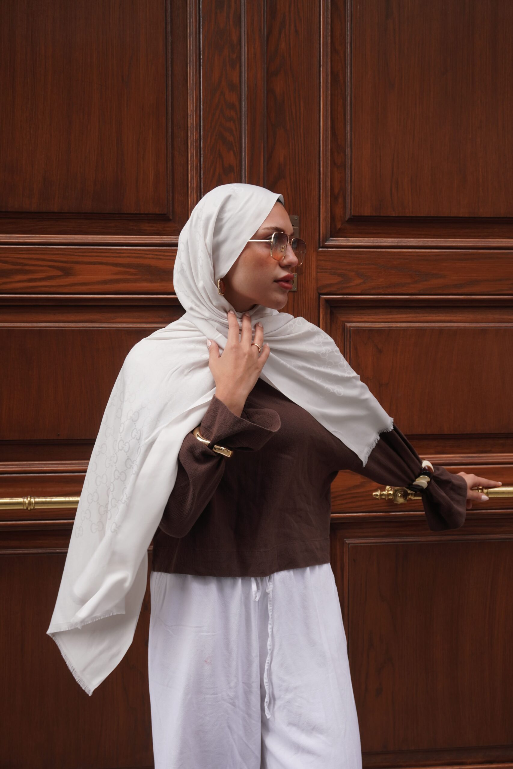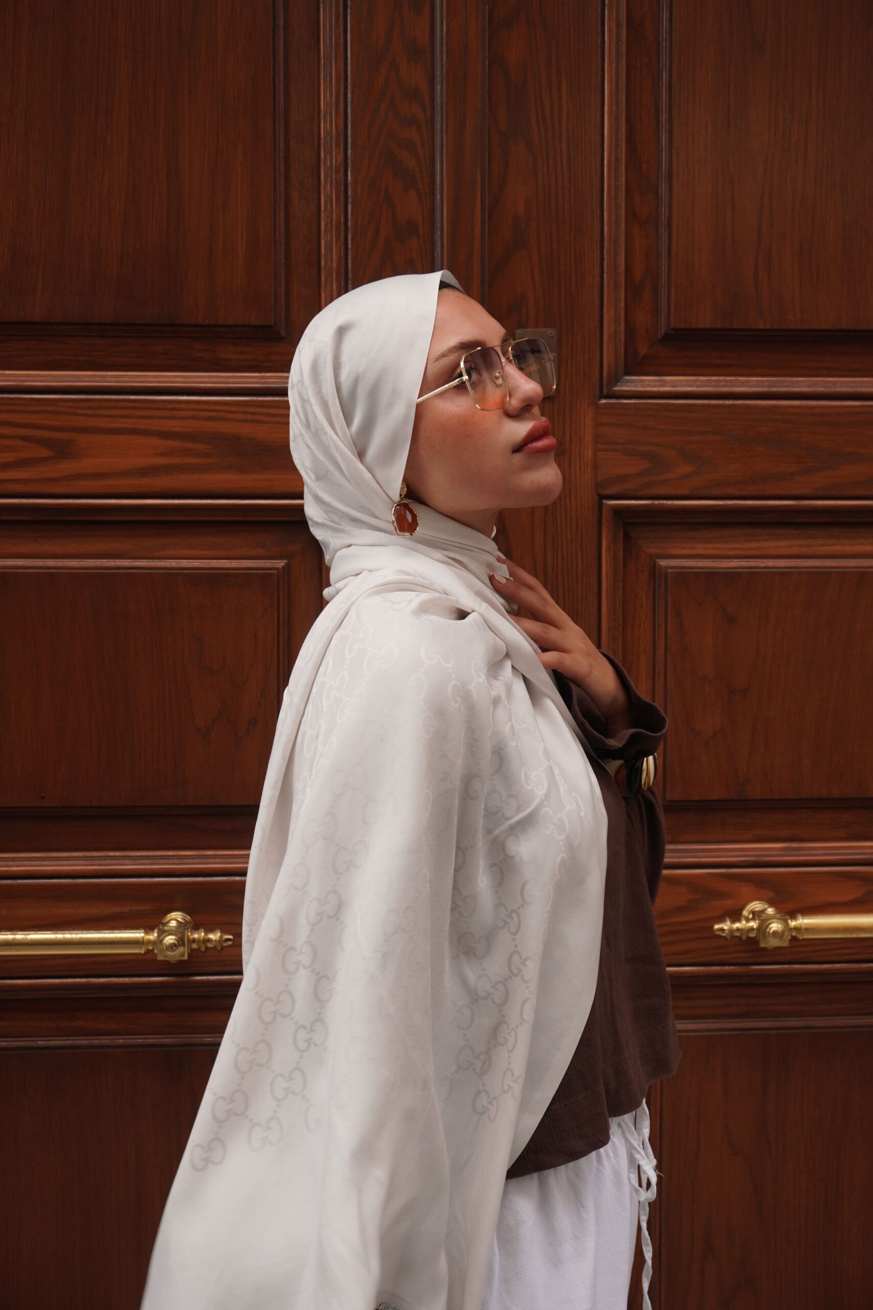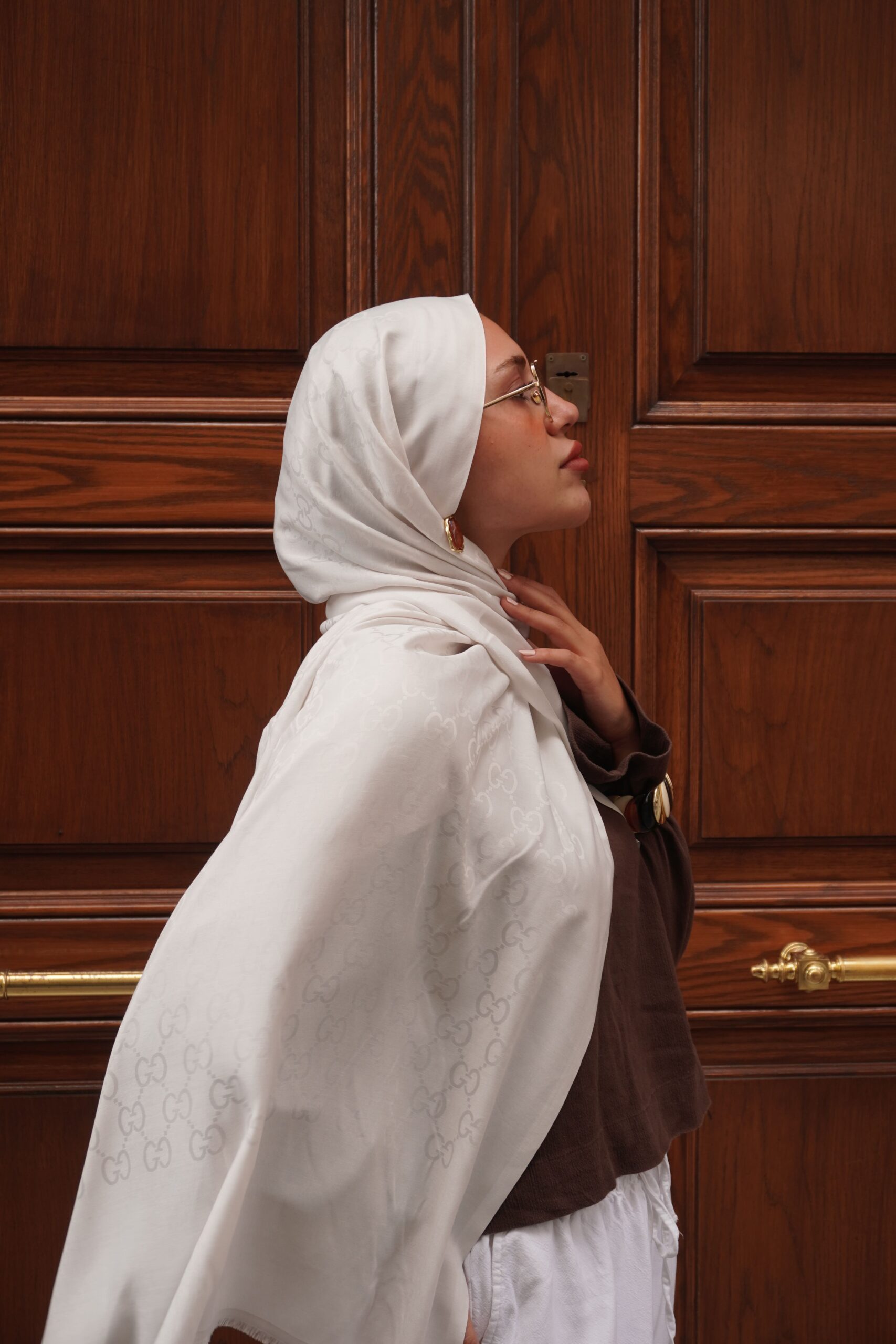 F Desenli İpek Kaşmir Çift Taraflı Şal 78001 – Ekru